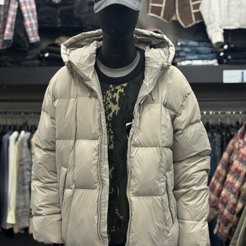 남성 나일론 사각퀼팅 후드 다운 점퍼입니다.