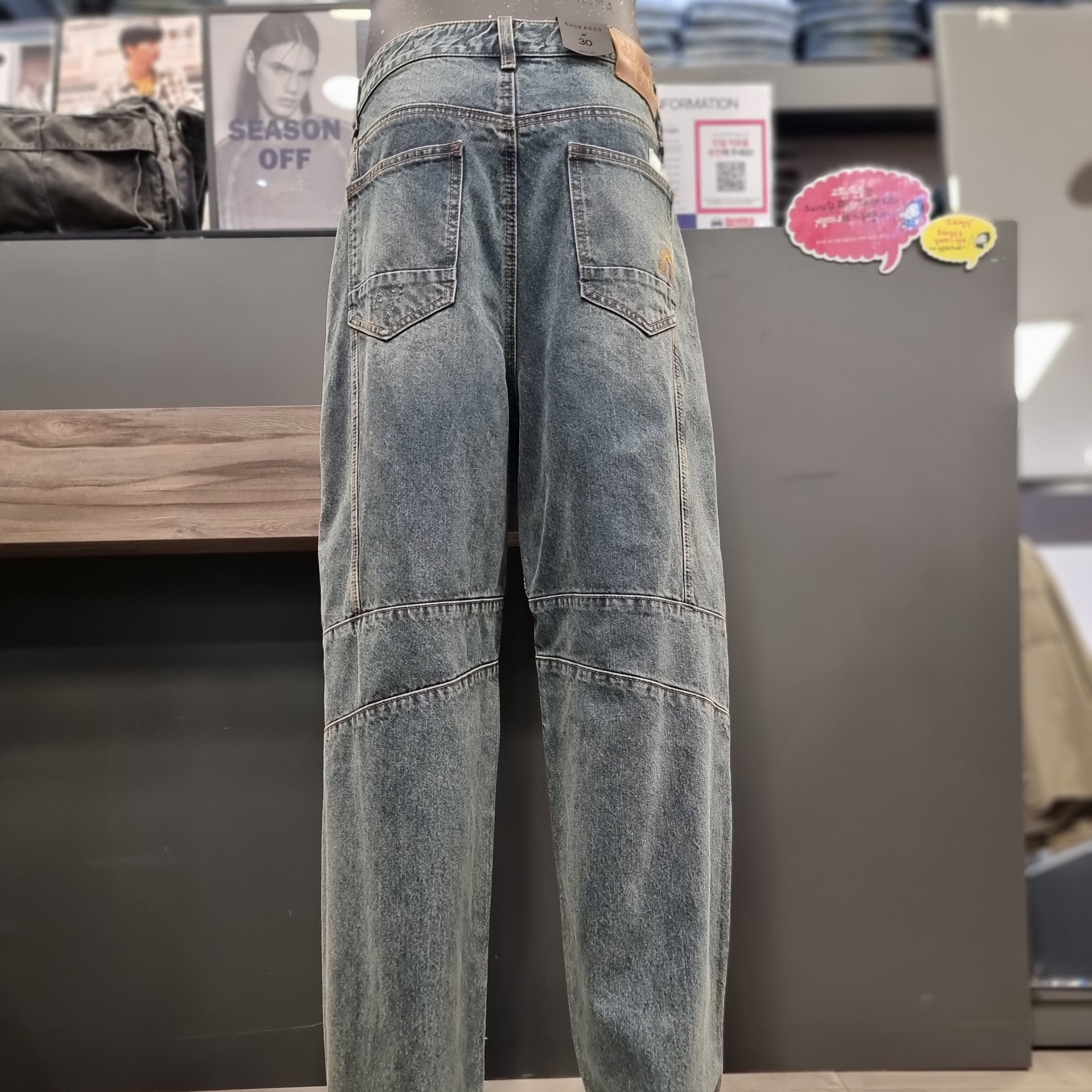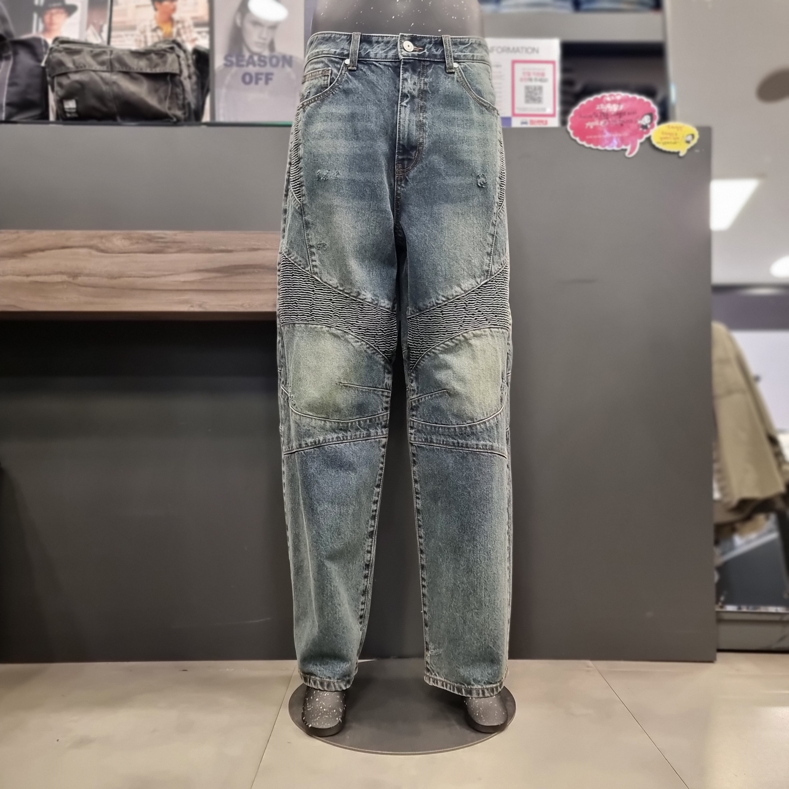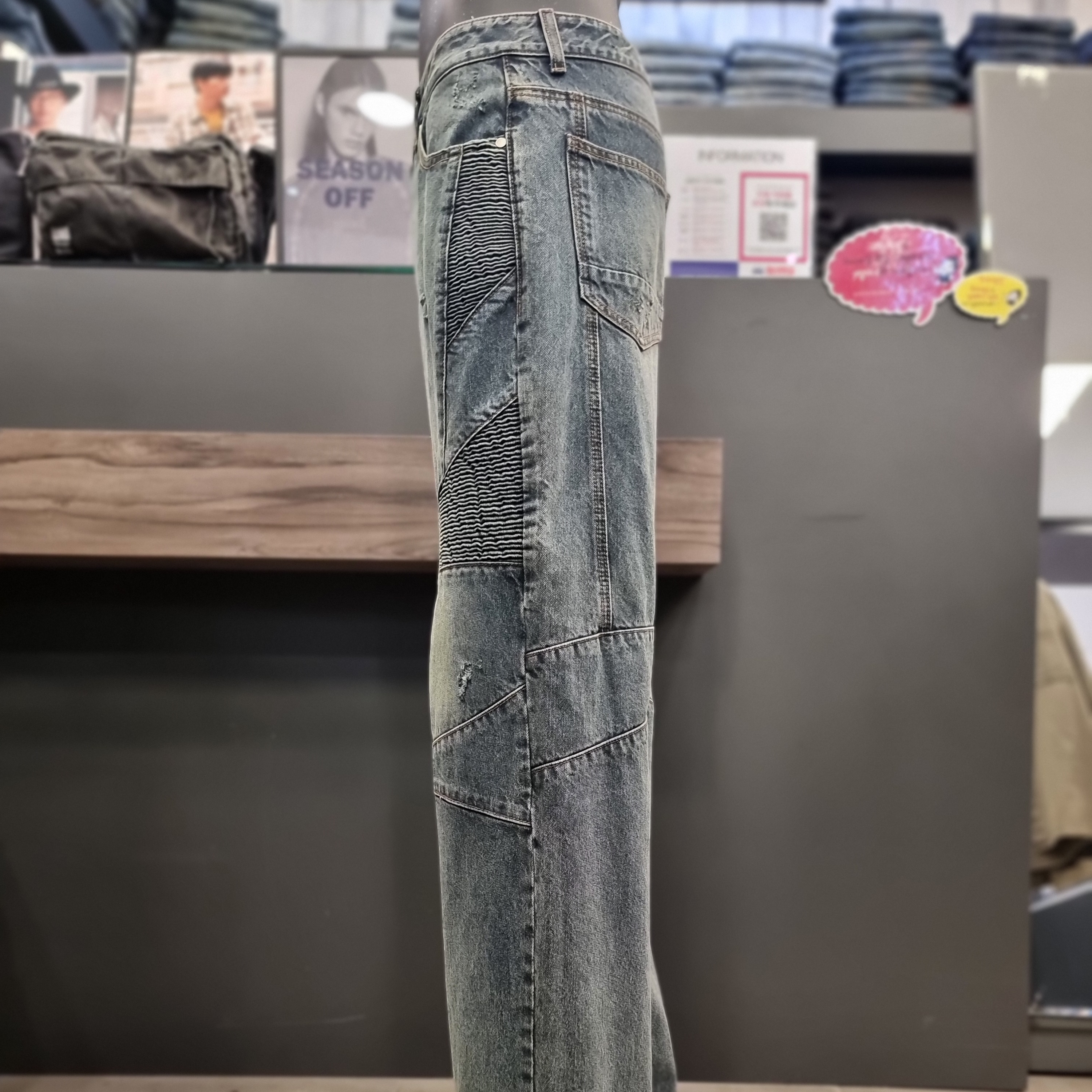 남성 와이드 바이커 디테일 데님 빈티지 청바지-DG