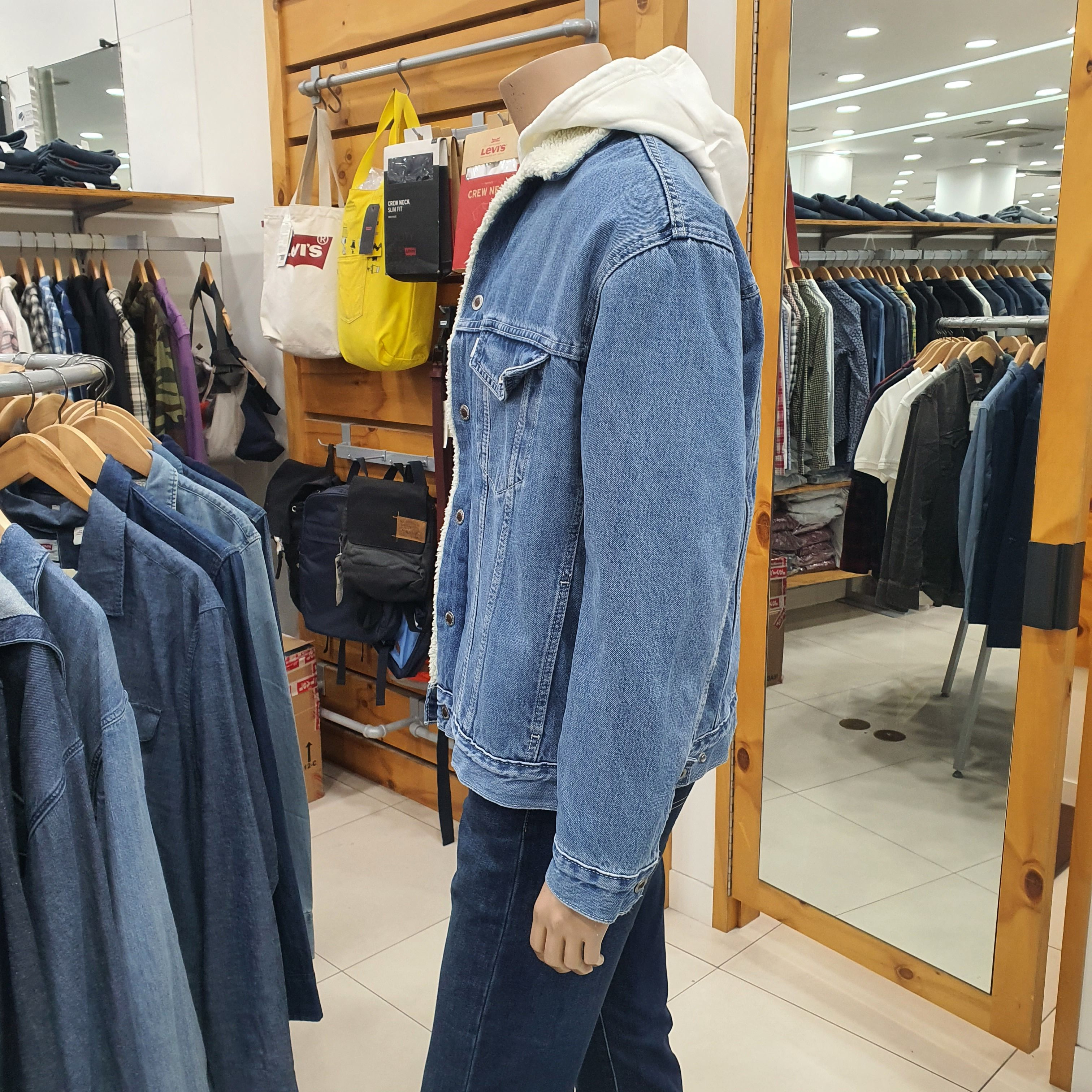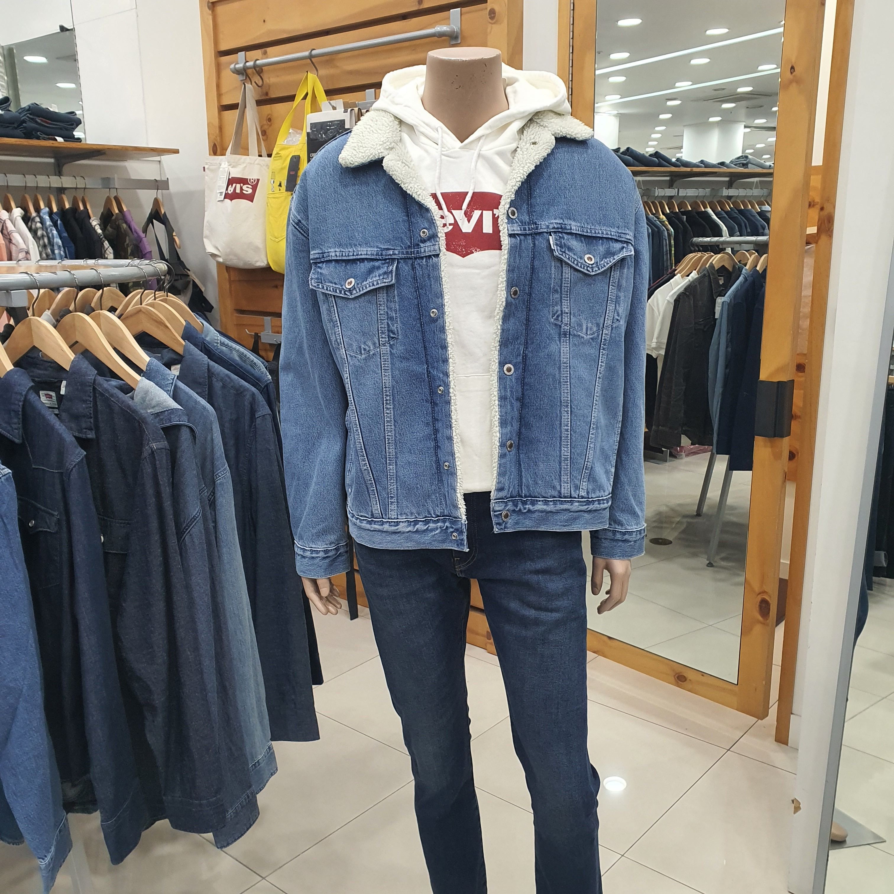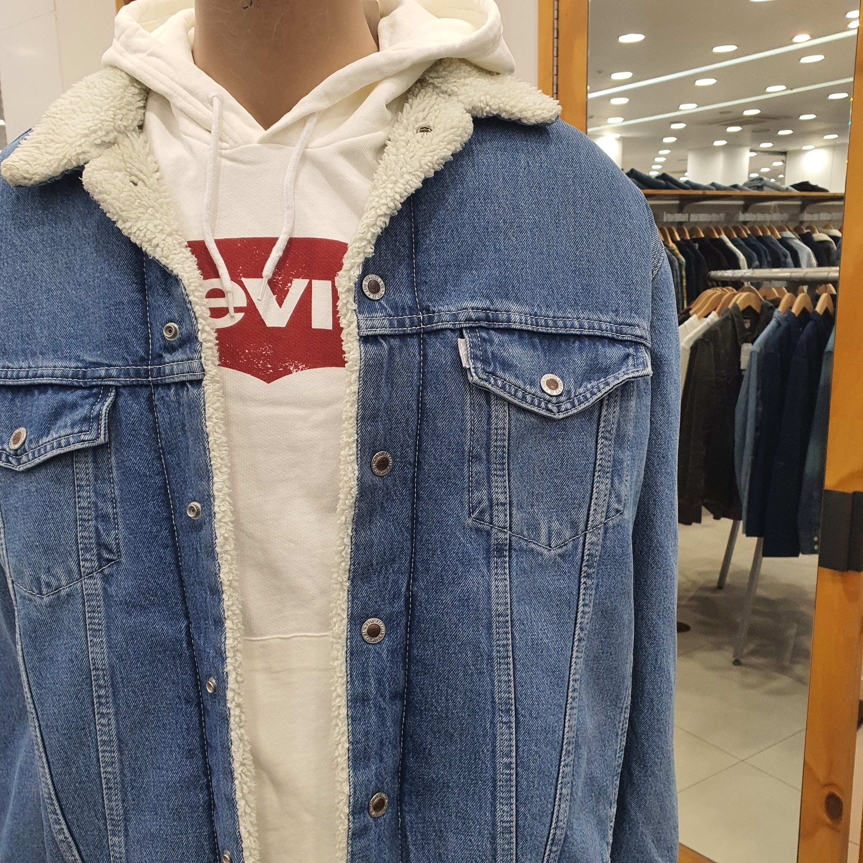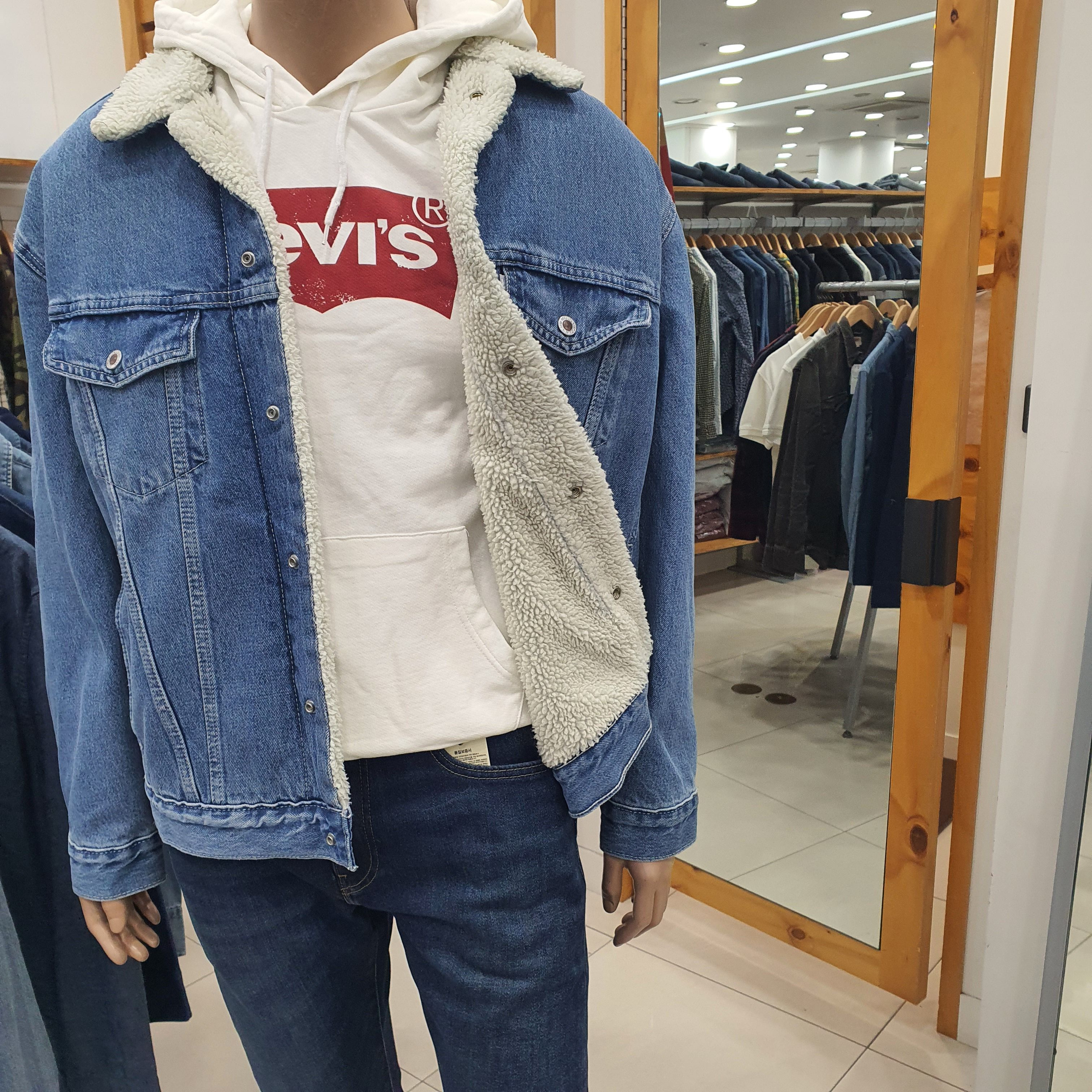 리바이스 남성 양털 자켓입니다.오버핏으로 나와 여유있게 나왔으며. 마네킹 M95(100)사이즈 착용했습니다.블랙청바지와 매치해서 착용하시면 더욱더 이쁩니다.