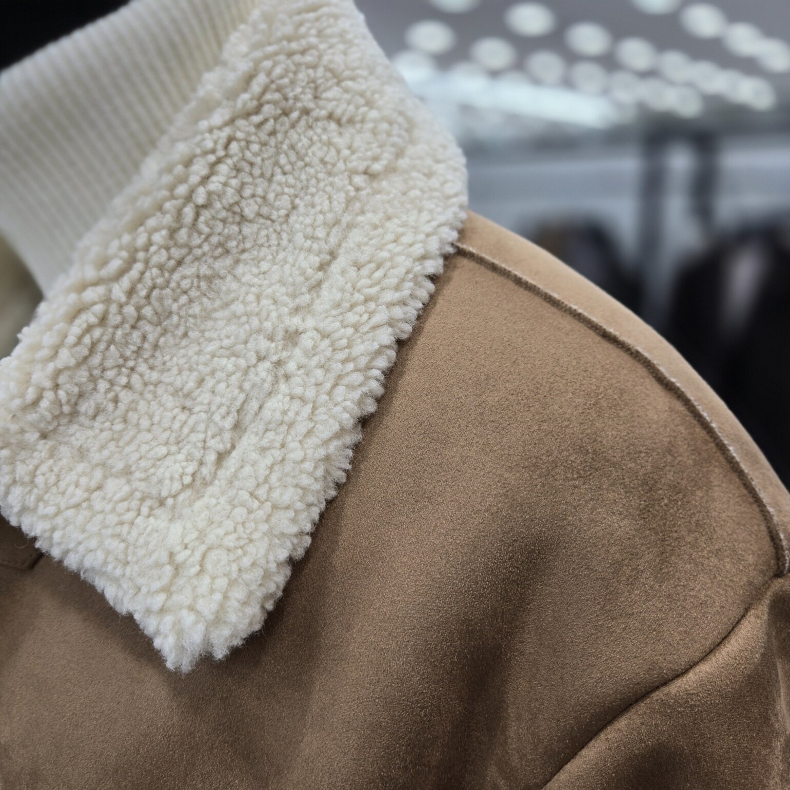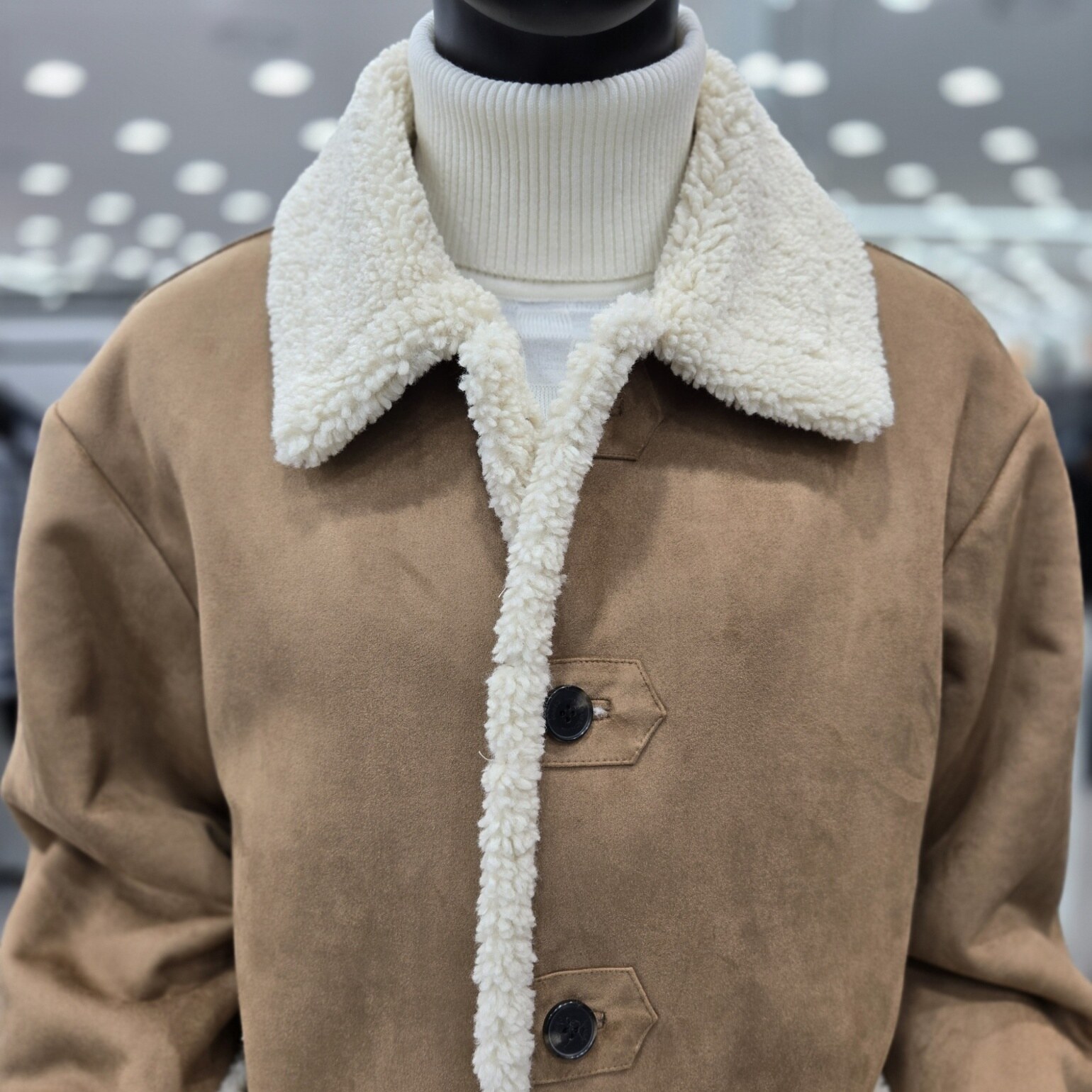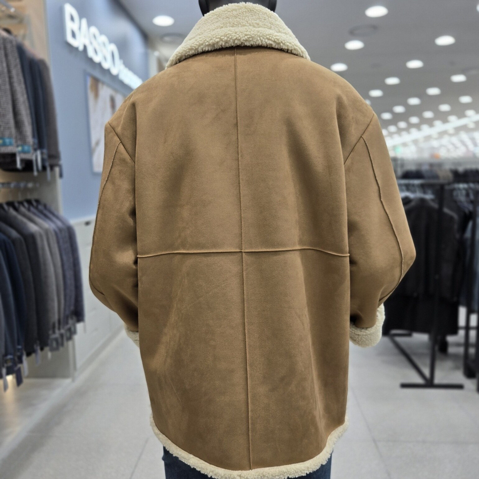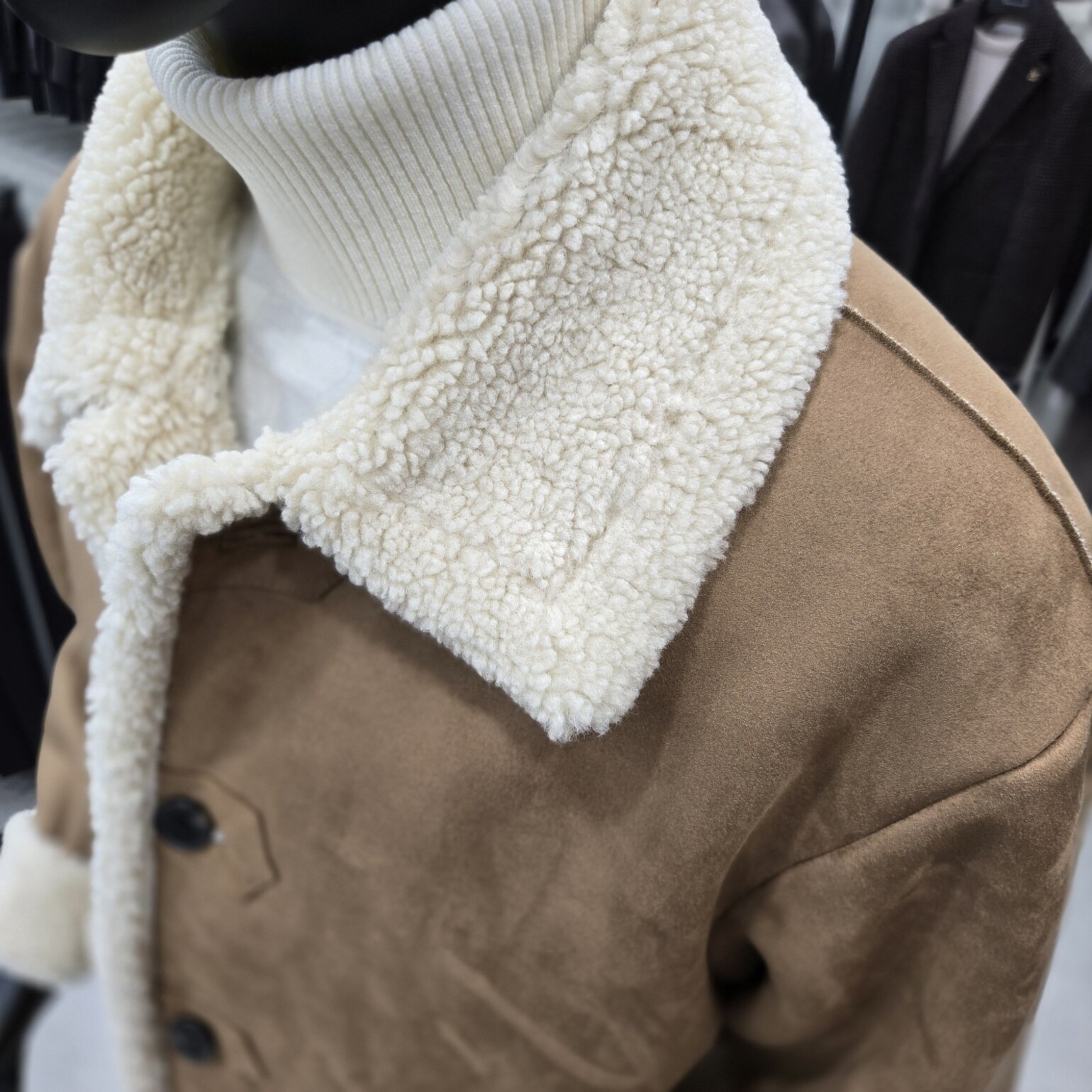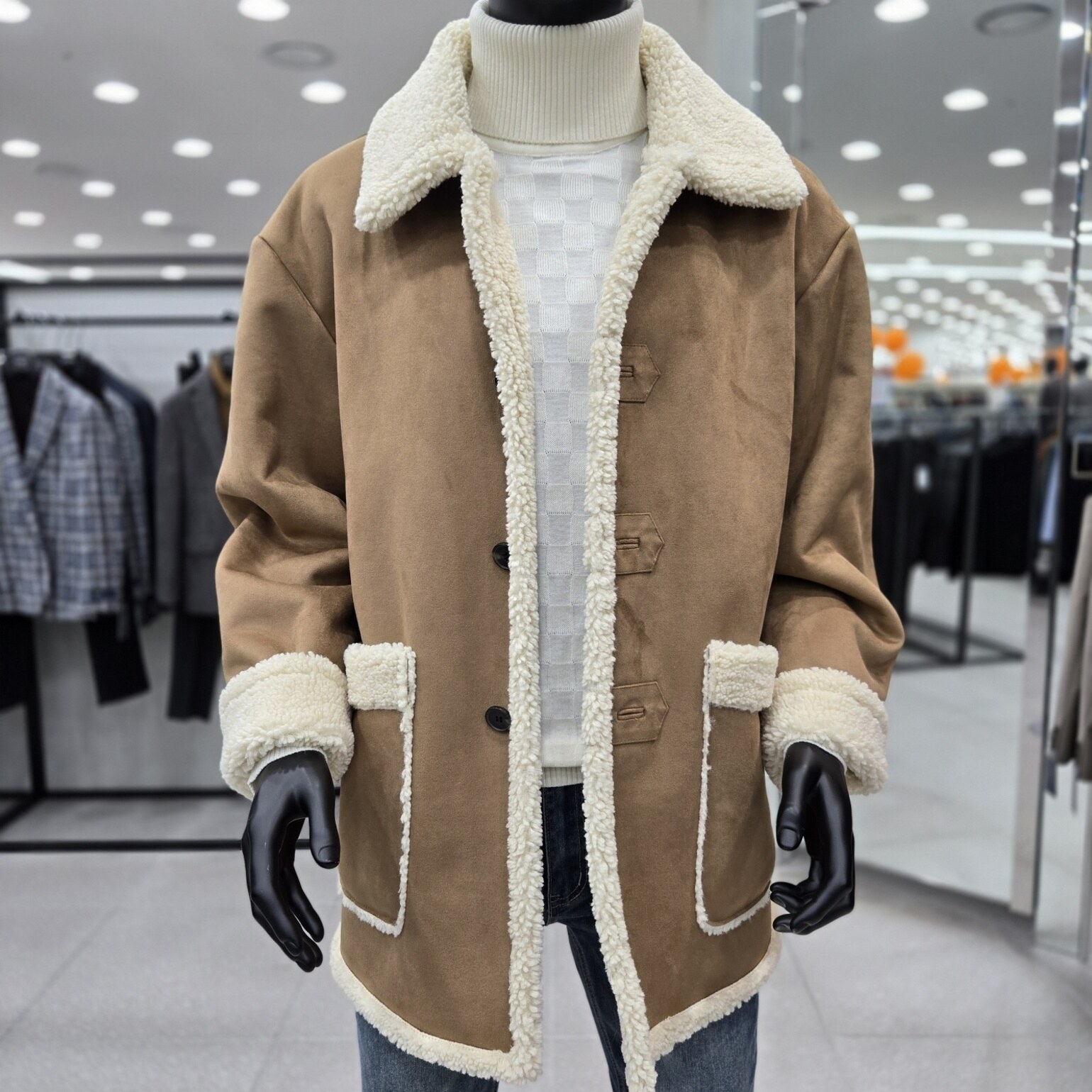 고급스러운 카멜컬러의 하프기장의 페이크 무스탕점퍼 입니다