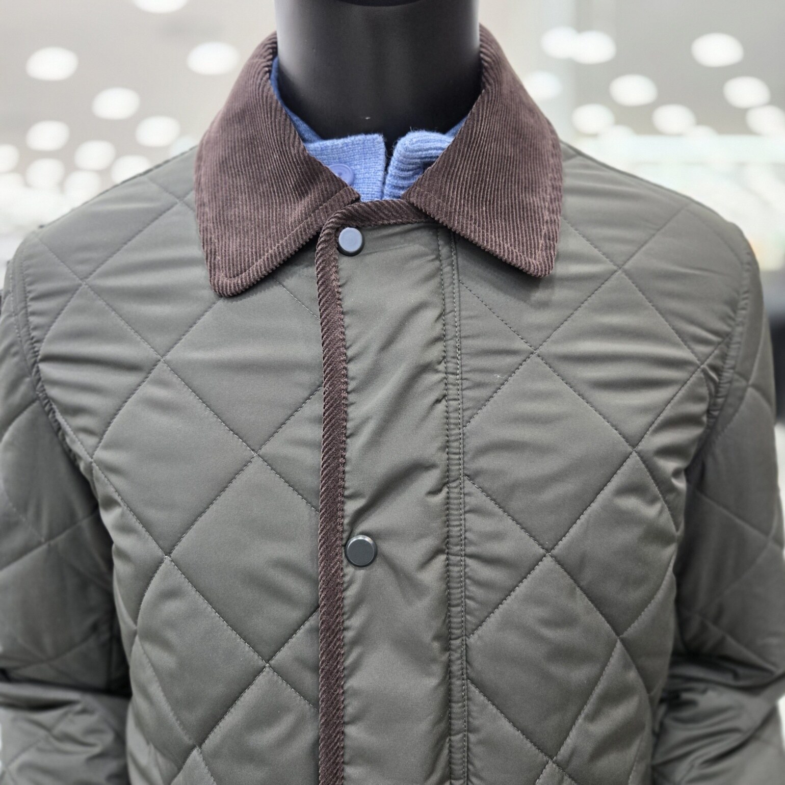 초겨울 찬바람을 막아줄수 있는 아이템으로 세련된 퀼팅처리와 카라,소매부분을 코튜로이 배색처리 하여