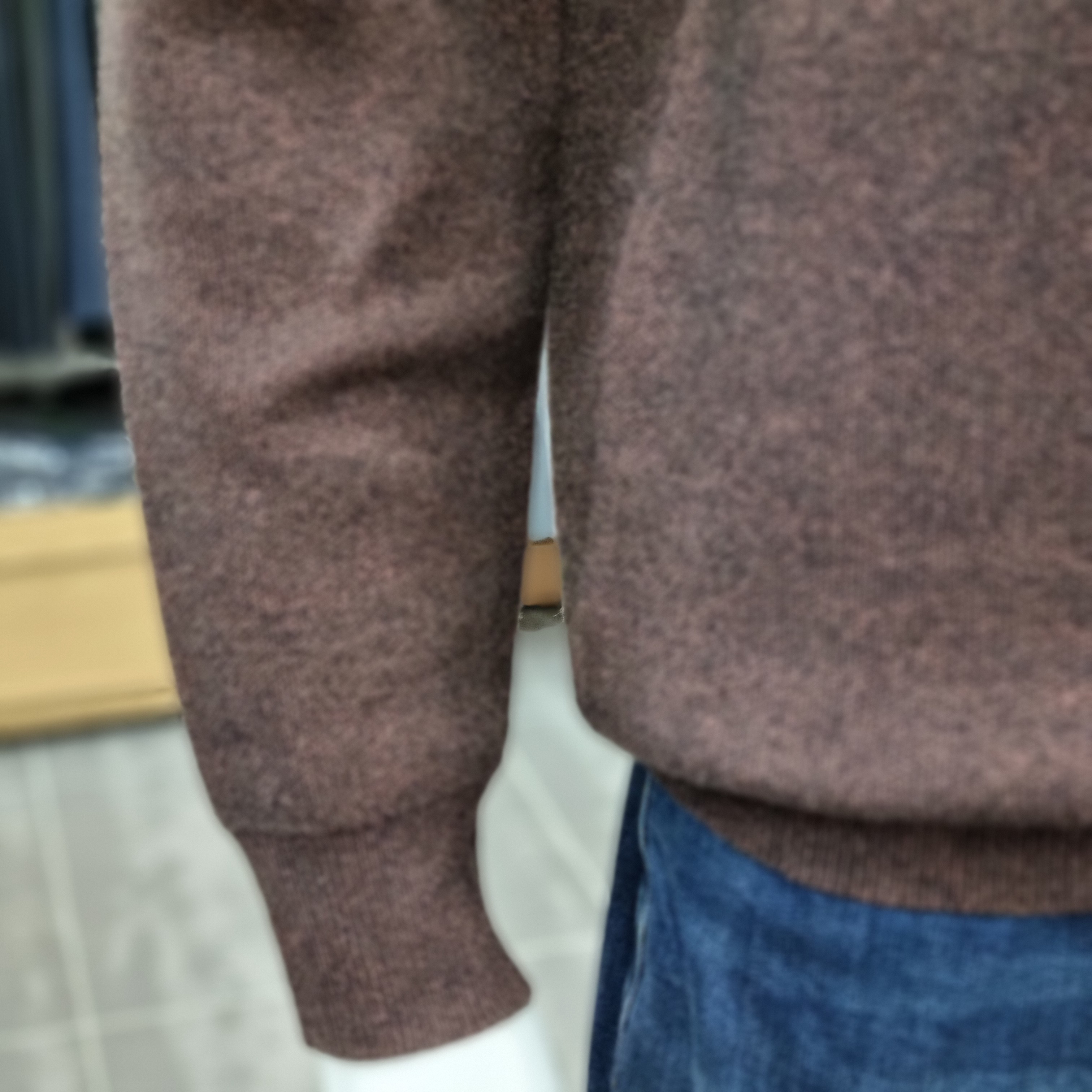 이면 테리 컬러 블럭 반집업 스웨터