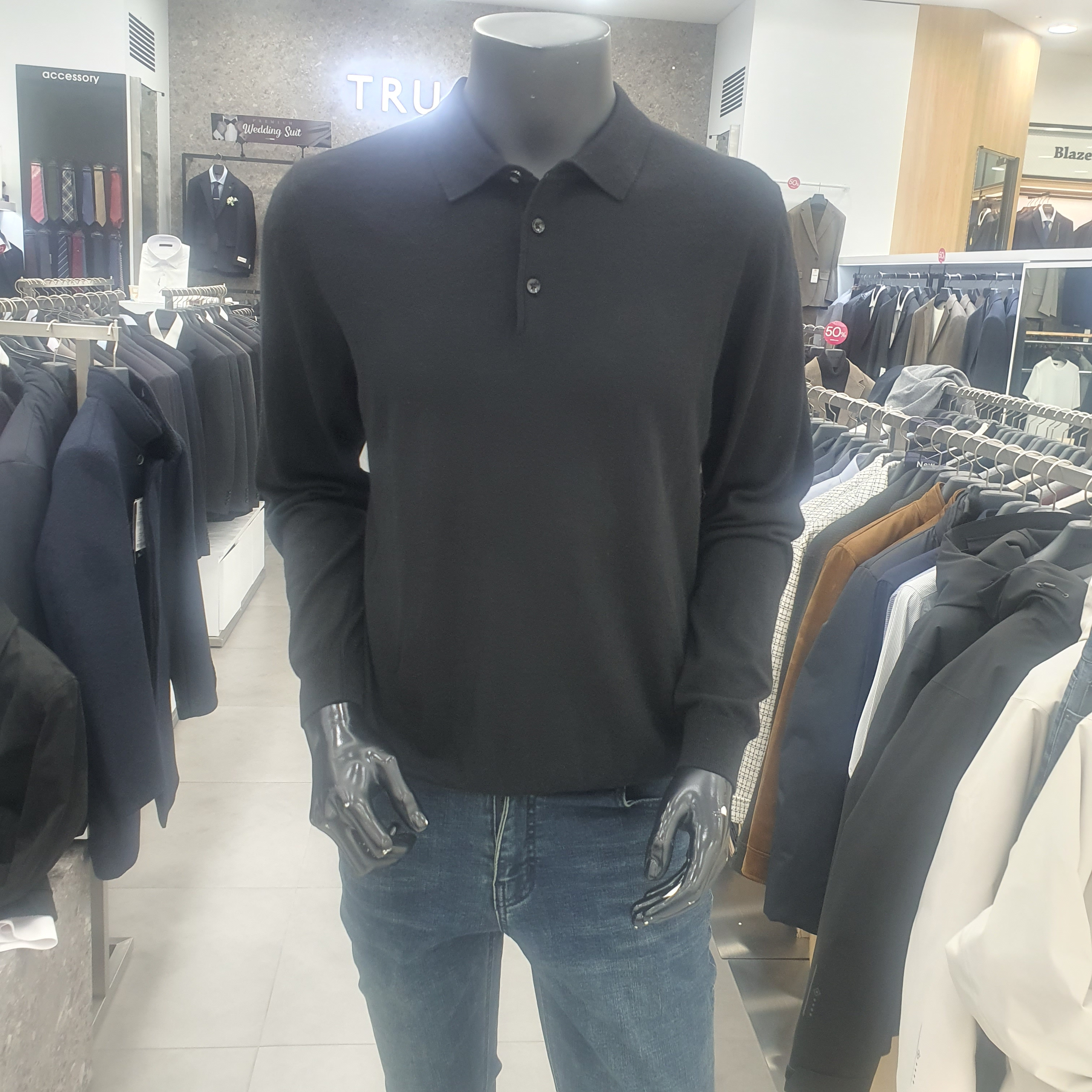 기본 카라형 니트로 정장과 캐주얼에 코디가 용이하며 보다 보온성이 뛰어나고 고급스러운 느낌을 주는 캐주얼 니트입니다