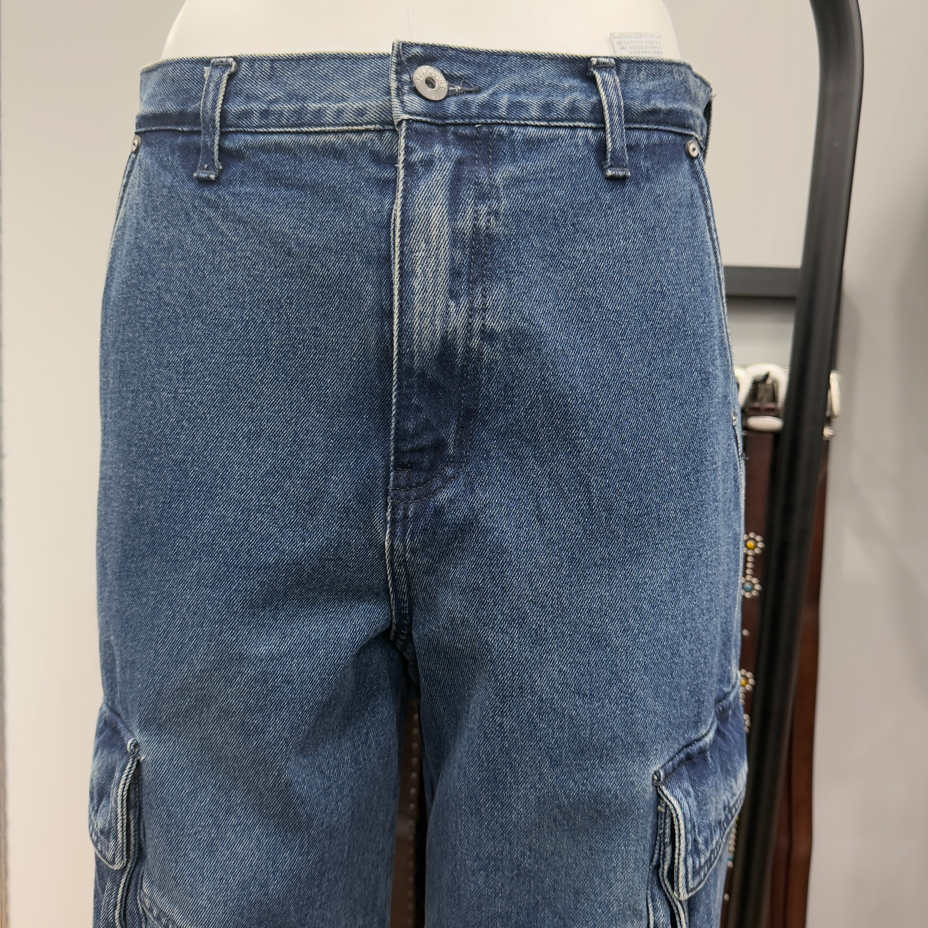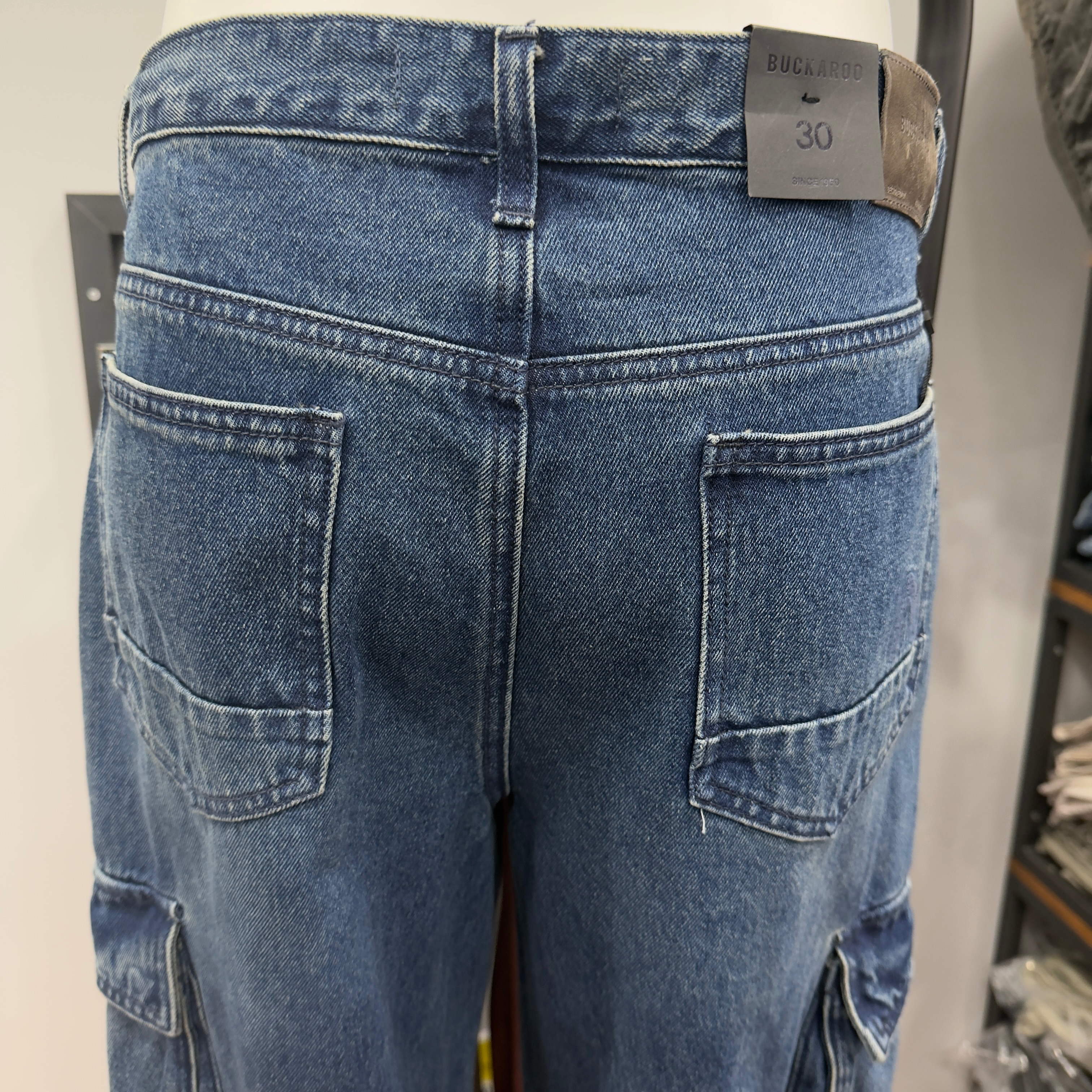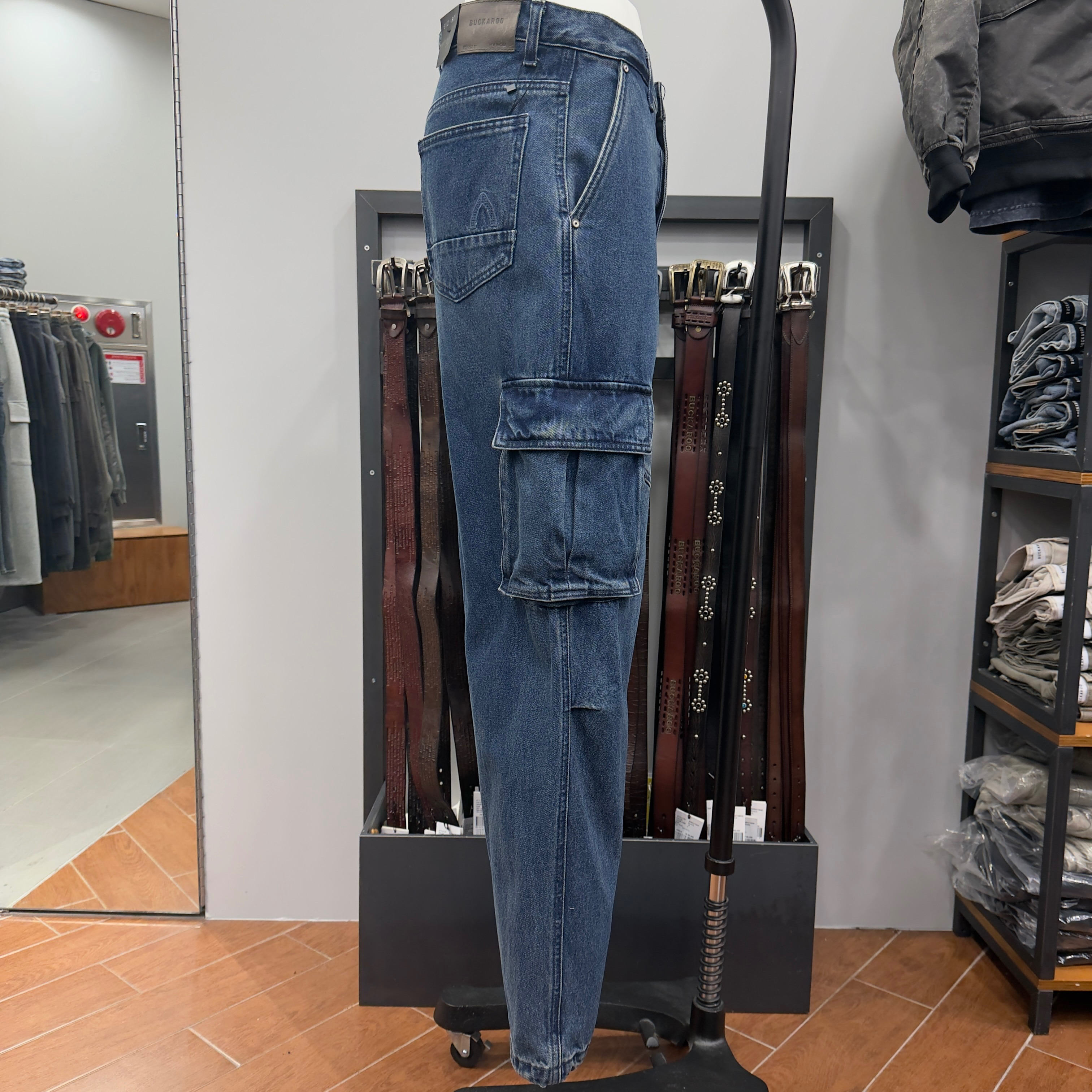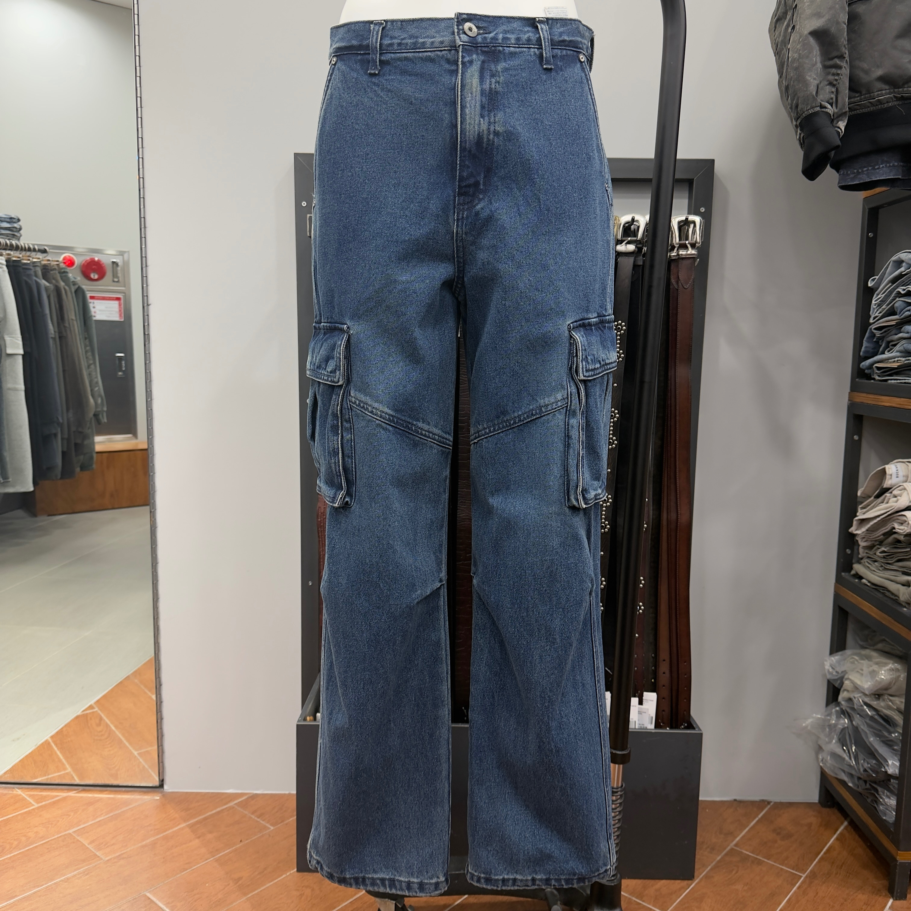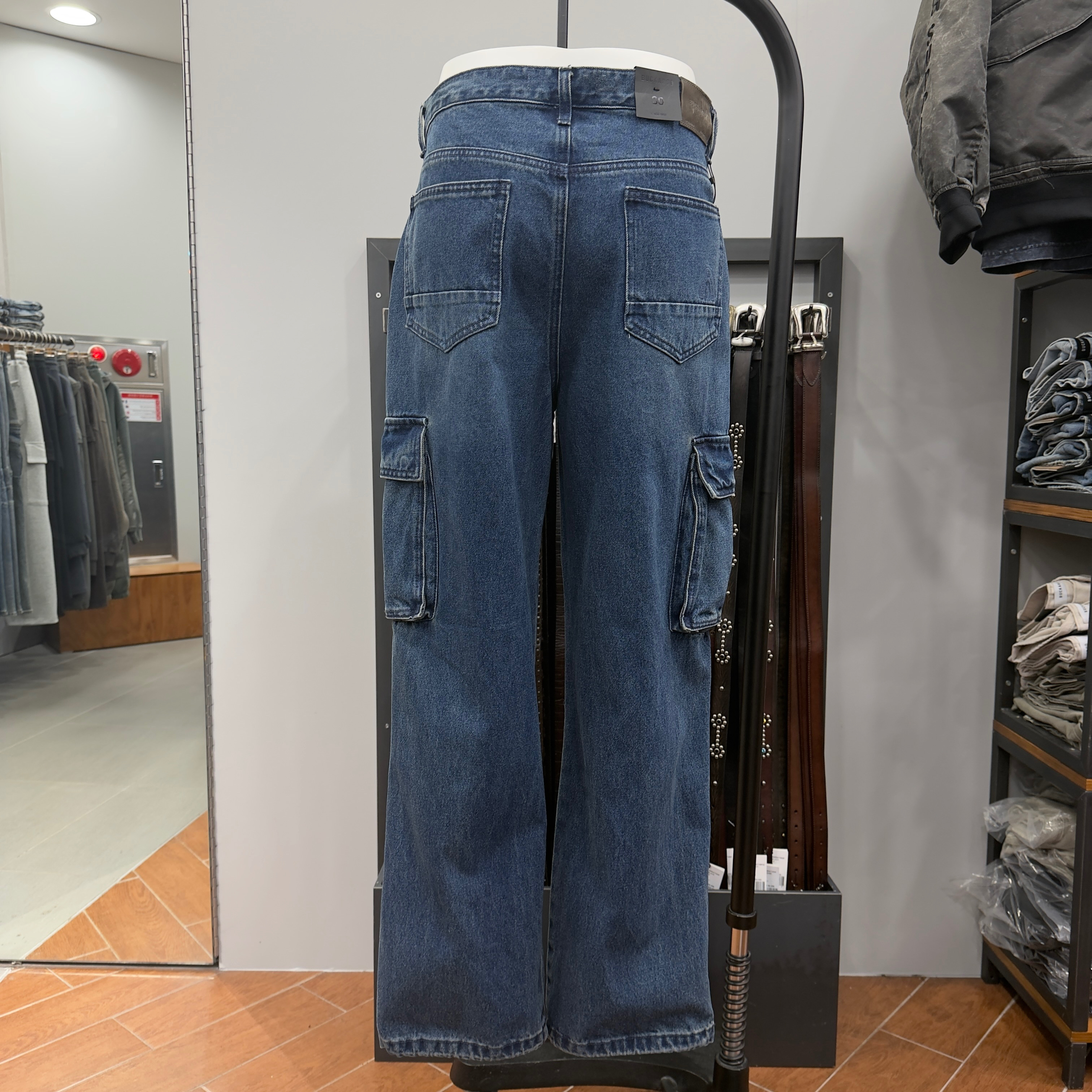 남성 데님 파라슈트 통 넒은 카고 팬츠 INDIGO_US
