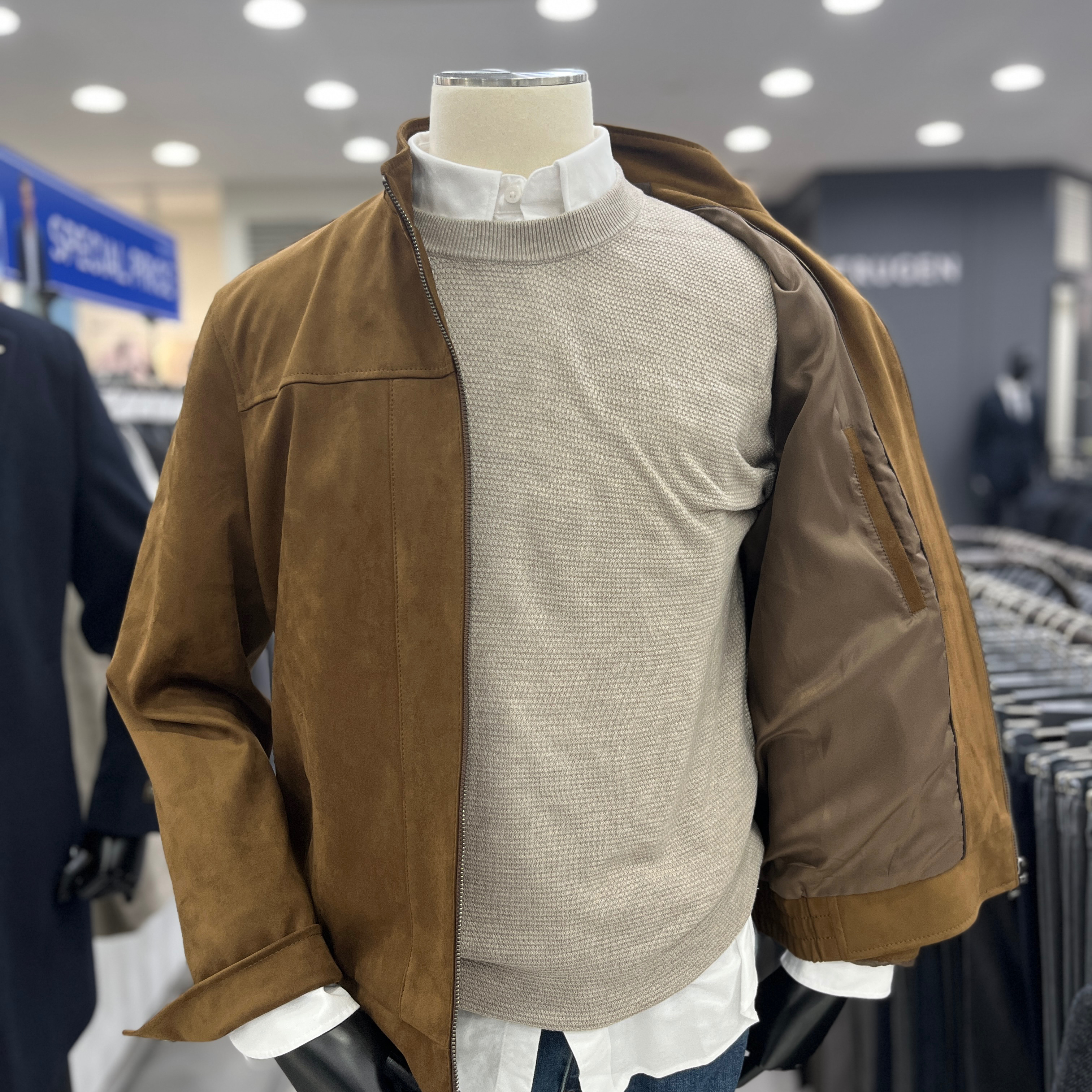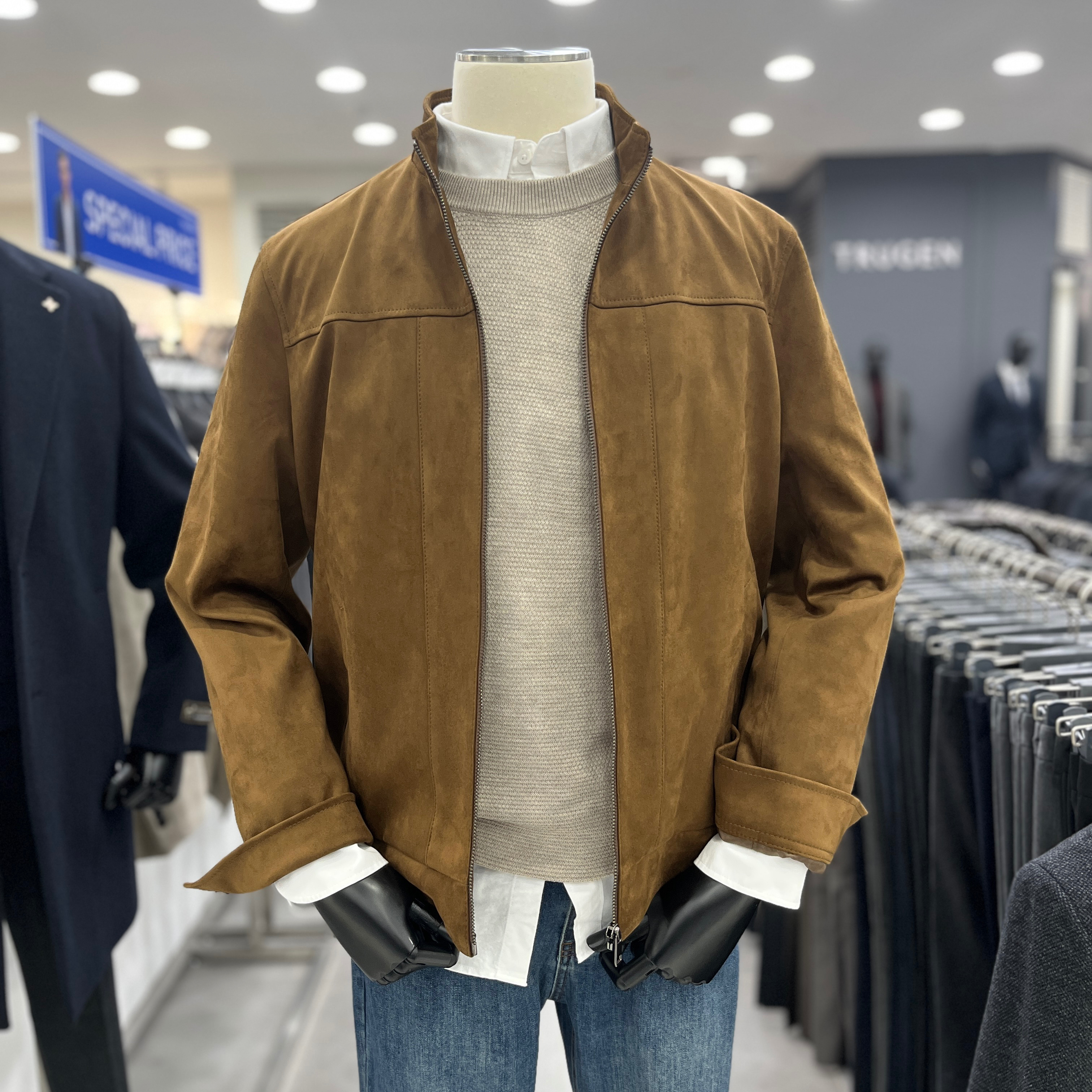 남자 추동 스웨이드 집업 브라운 컬러 캐주얼 자켓 OSTJ012