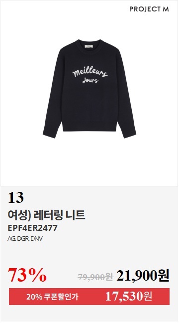 15+5%쿠폰) 프로젝트엠 본사직영 온라인단독/FW신상/아울렛 특가 ~84%OFF