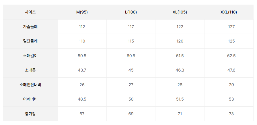 · 사이즈 : 95(M) / 100(L) / 105(XL) / 110(XXL)