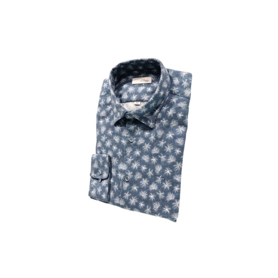 코듀로이 위에 기모 블러쉬처리된 도톰한 플라워 프린트 패턴의 셔츠