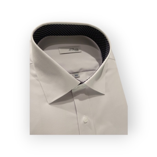 구김이 없고 신축성이 있는 솔리드패턴의 슬림핏 셔츠
