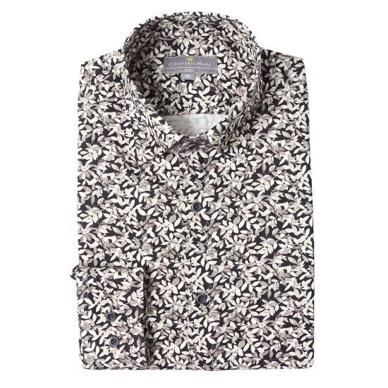 T1P:스넵카라 면100 프린트 세미슬림 긴팔 남방