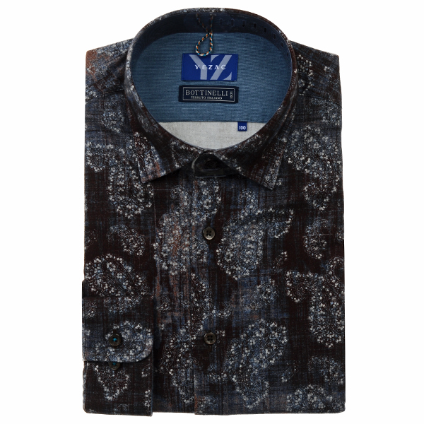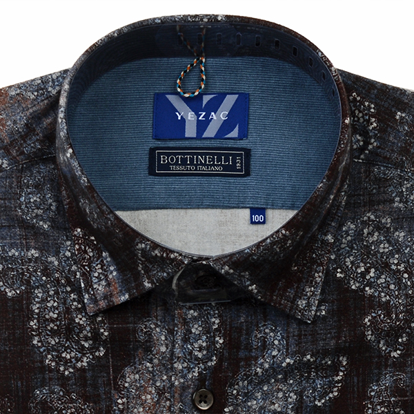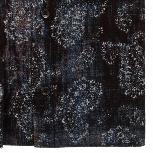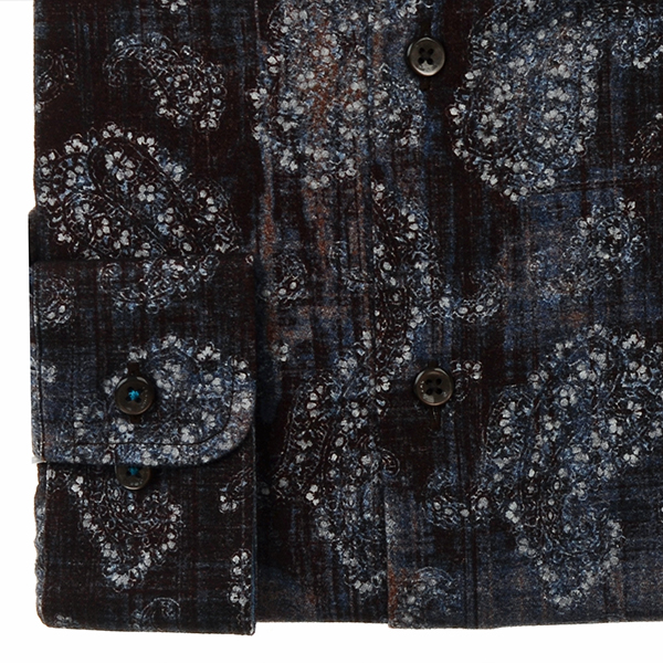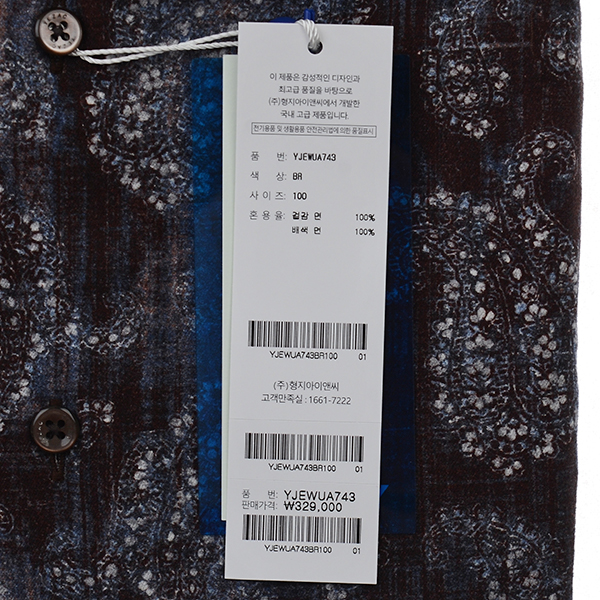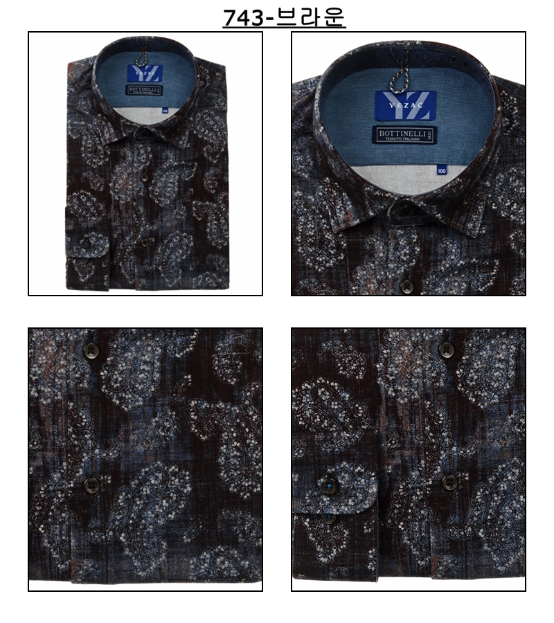이태리 보티넬리 코튼 100 기모 소재로 페이즐르 패턴과 브라운 칼라