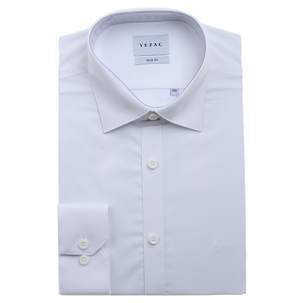 스트레치 솔리드 패턴의 세미와이드 카라 슬림핏 긴소매
