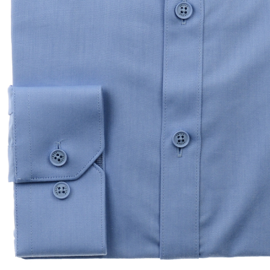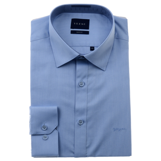 카라,카후스 배색을 넣은 블루 컬러 슬림핏 긴소매