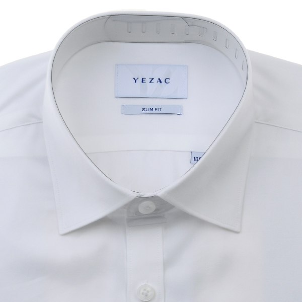 견고한 조직감의 외관이 고급스러운 화이트 칼라 슬림핏 긴소매