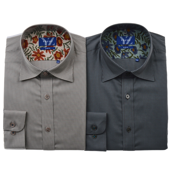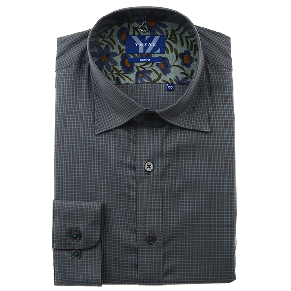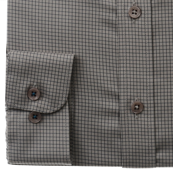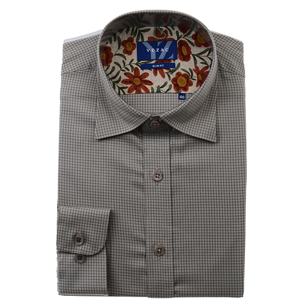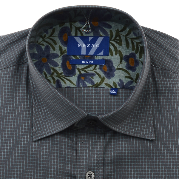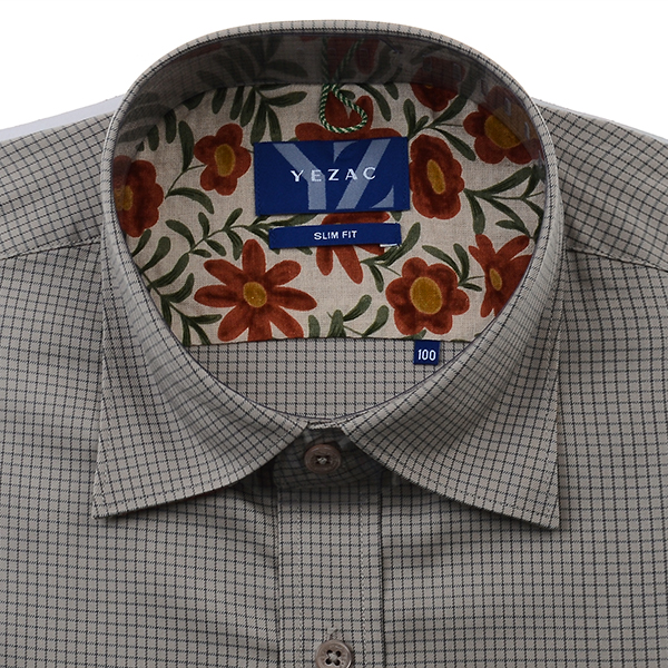 고급스러운 컬러감의 잔잔한 체크 패턴으로 요크 안쪽에 배색을 넣은