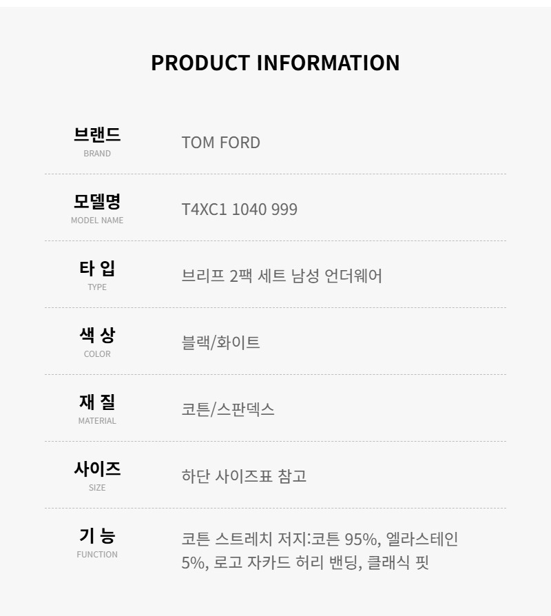 톰포드 TOM FORD T4XC1 1040 999 남성 언더웨어