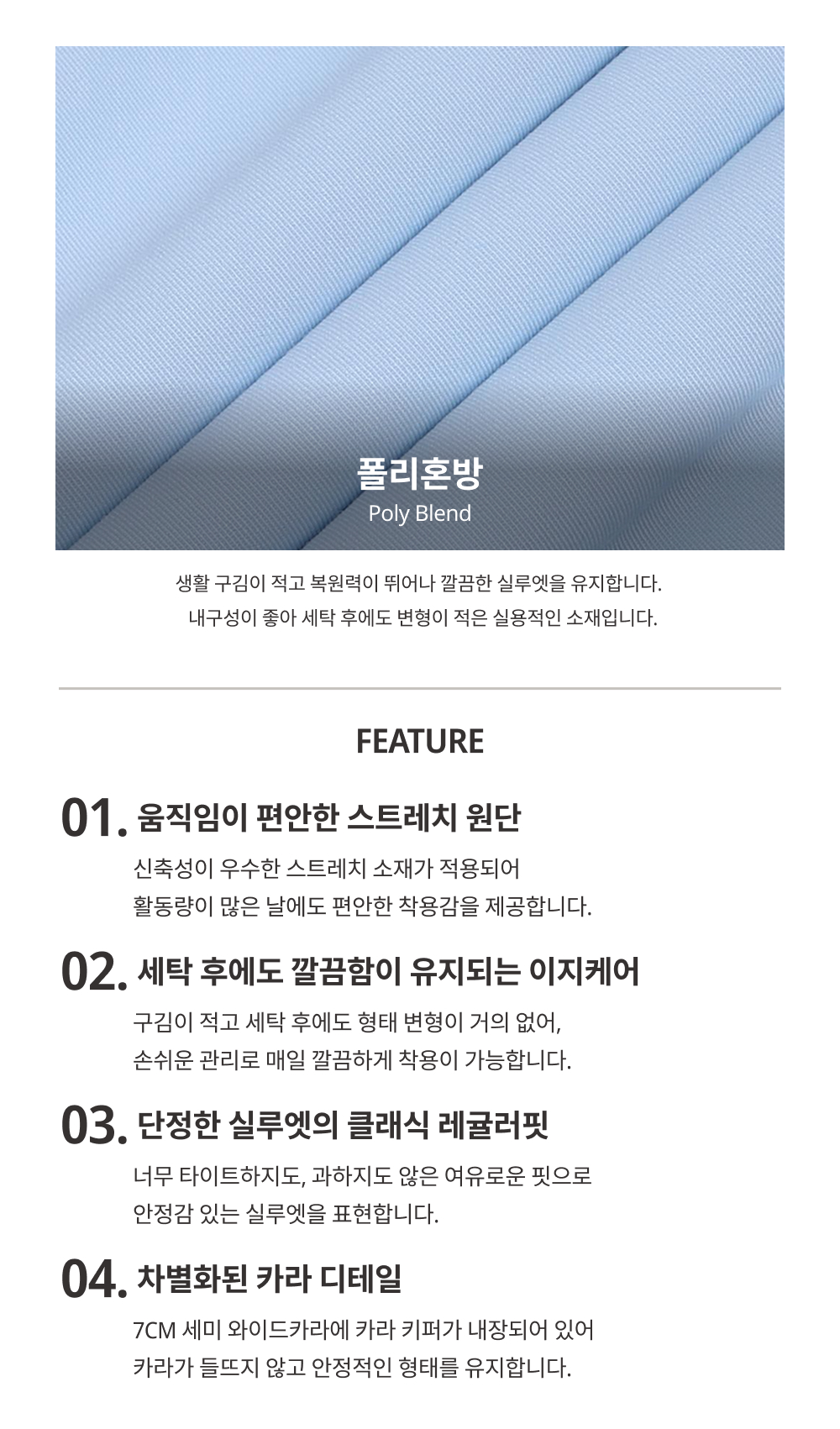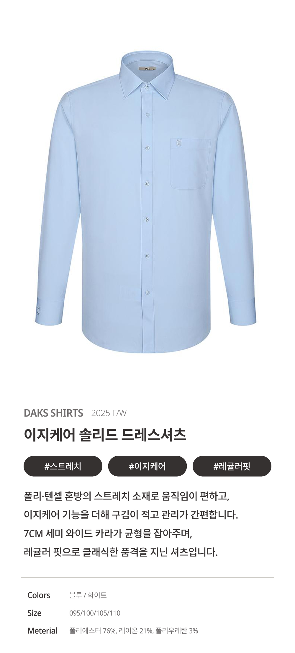 (롯데백화점)25FW 이지케어 솔리드 긴팔셔츠 레귤러핏 블루(DLA3SHDL101-B1)사은품증정