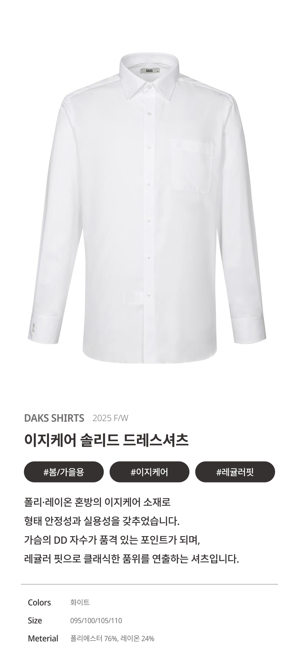 (롯데백화점)25FW 폴리혼방 이지케어 솔리드 드레스셔츠 레귤러핏(DLA3SHDL111-A1)사은품증정