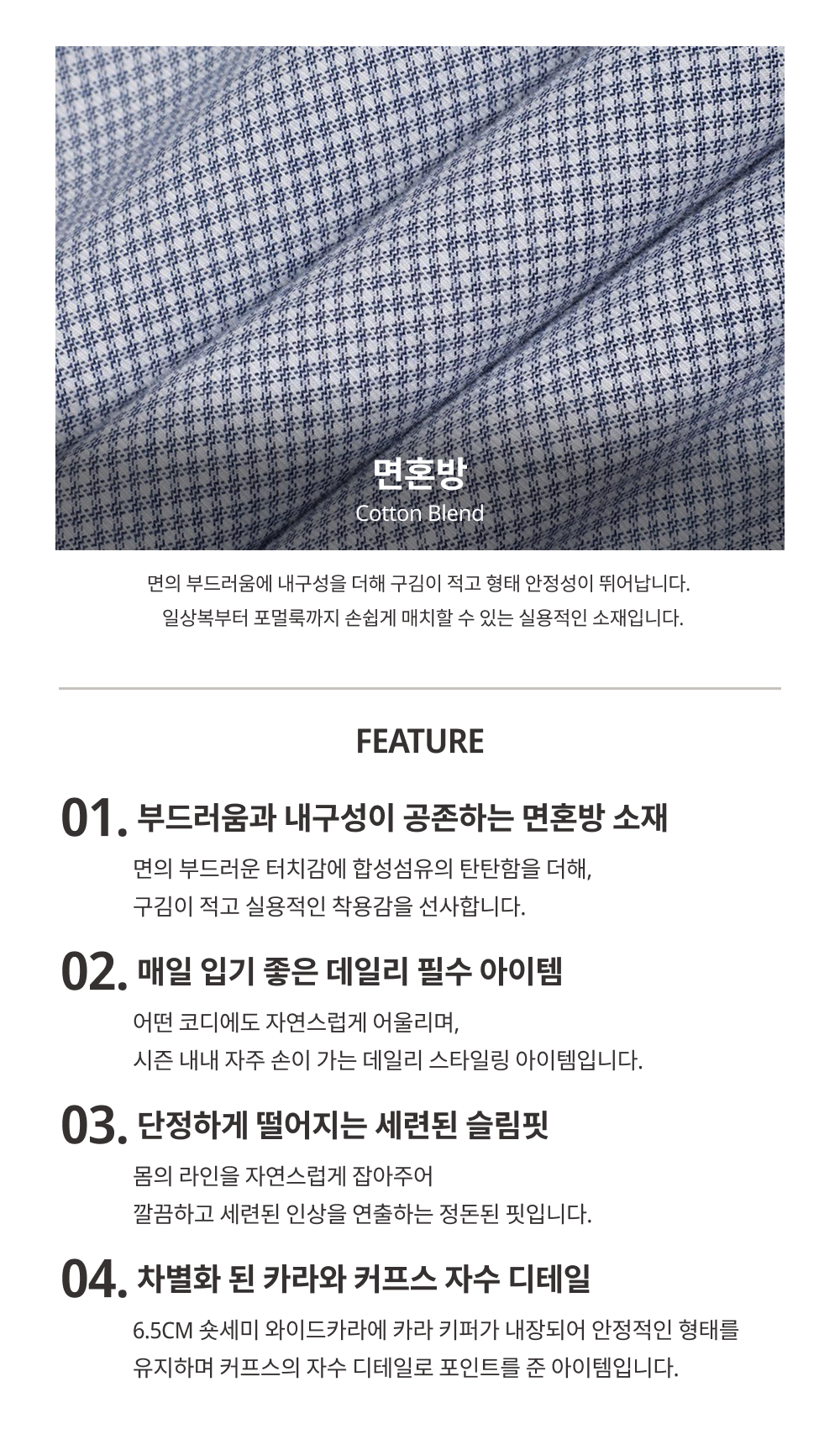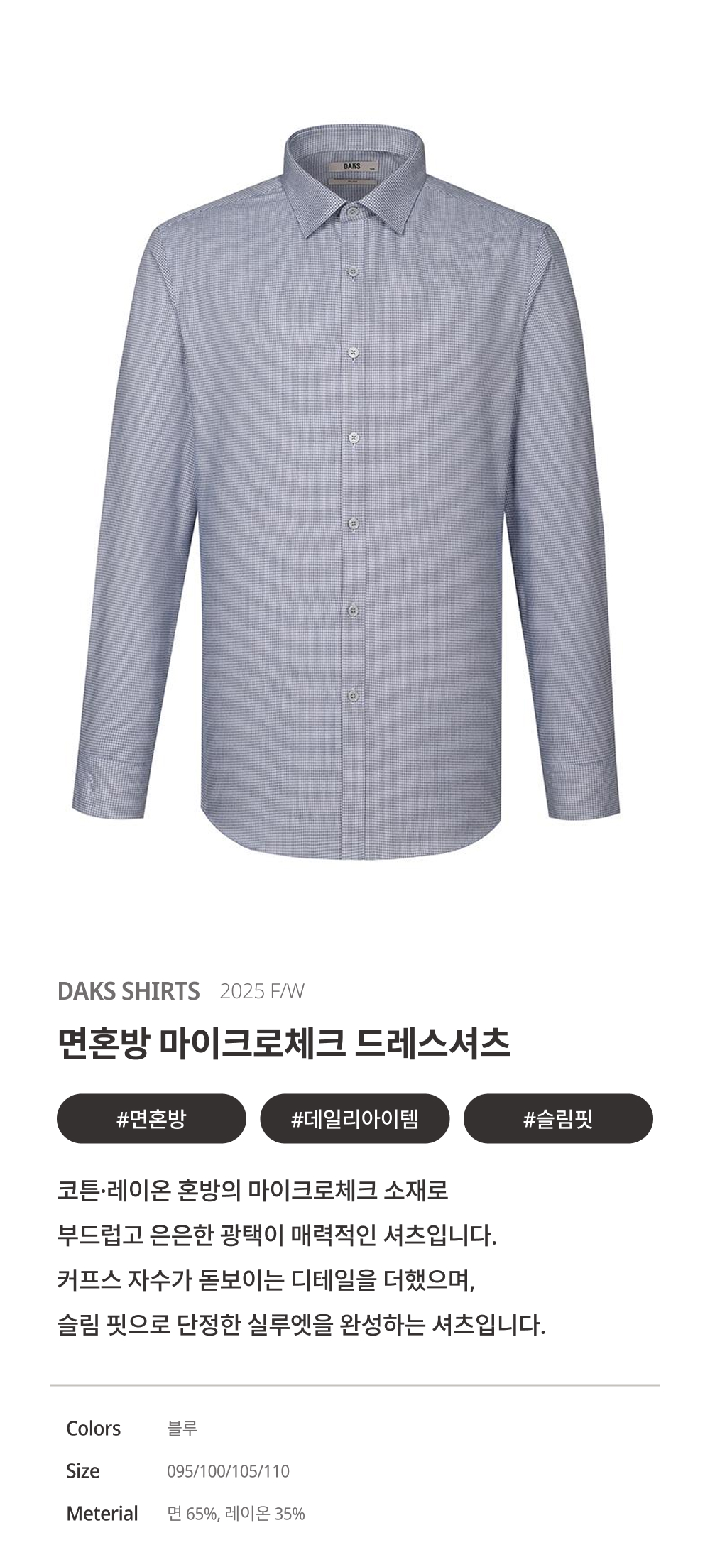(롯데백화점)(25FW) 면혼방 마이크로체크 드레스셔츠 슬림핏(DLA3SHDL303-B1)사은품증정