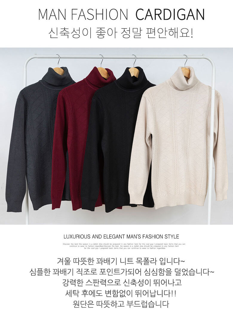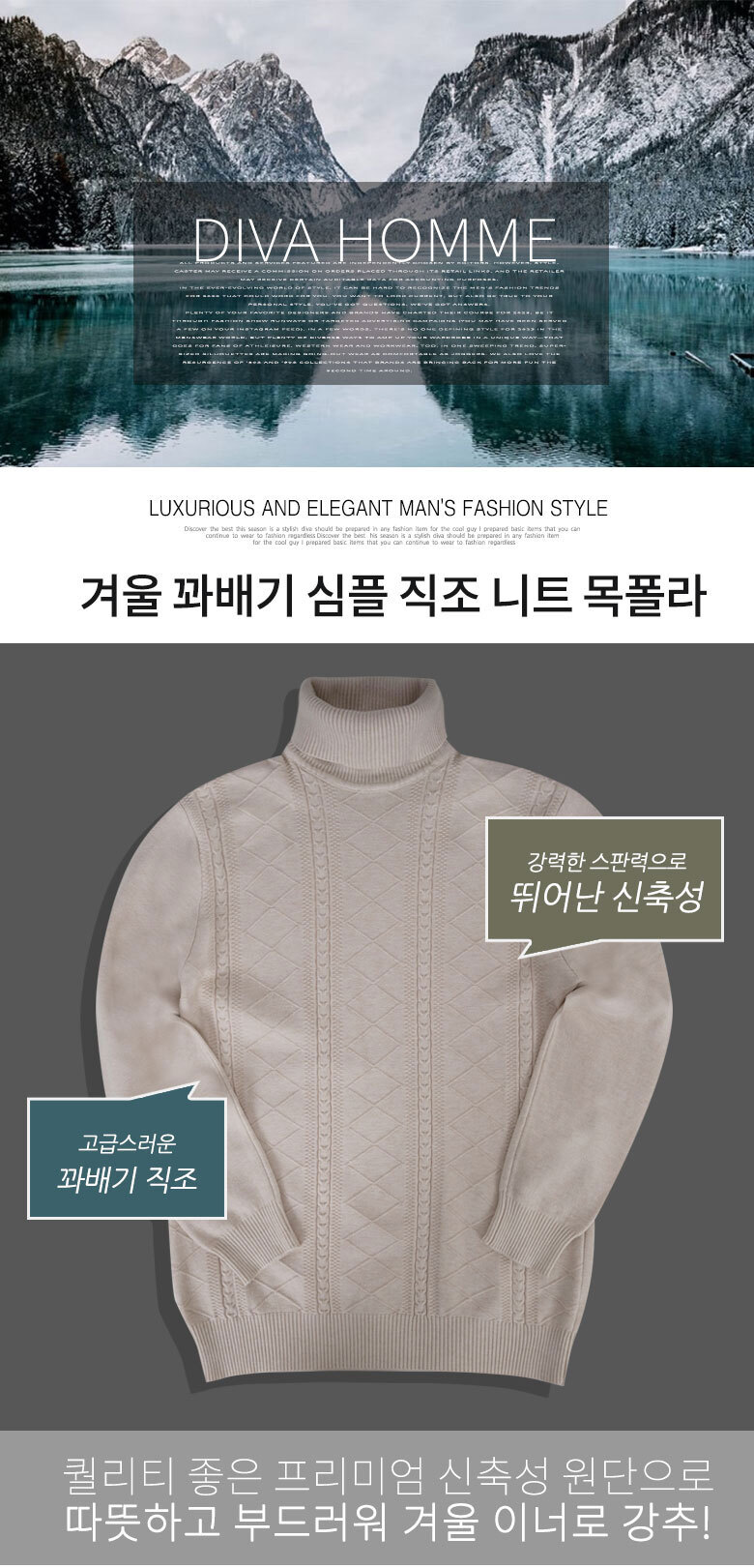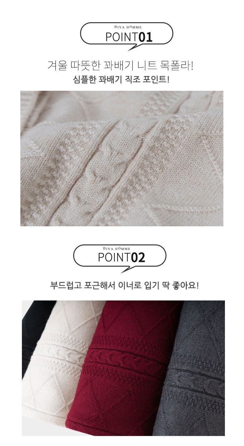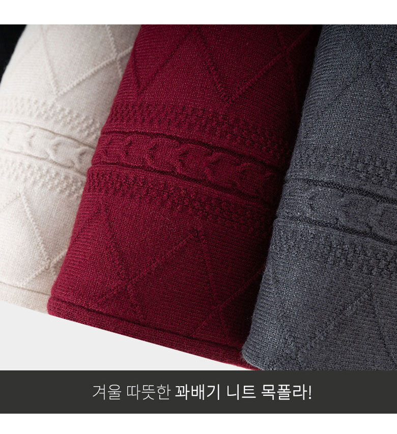 (디바옴므)겨울 꽈배기 심플 직조 니트 목폴라 스웨터 골지