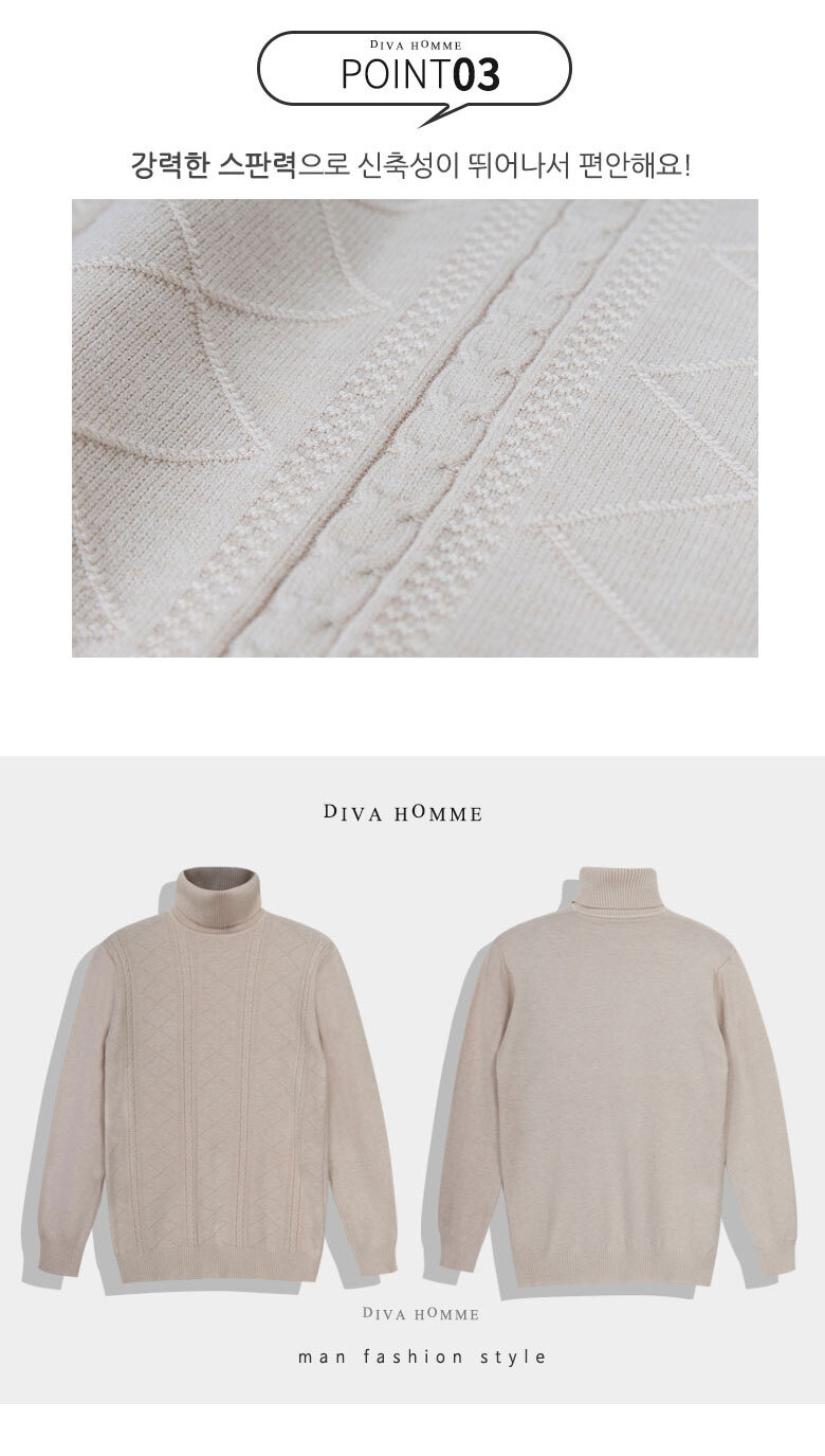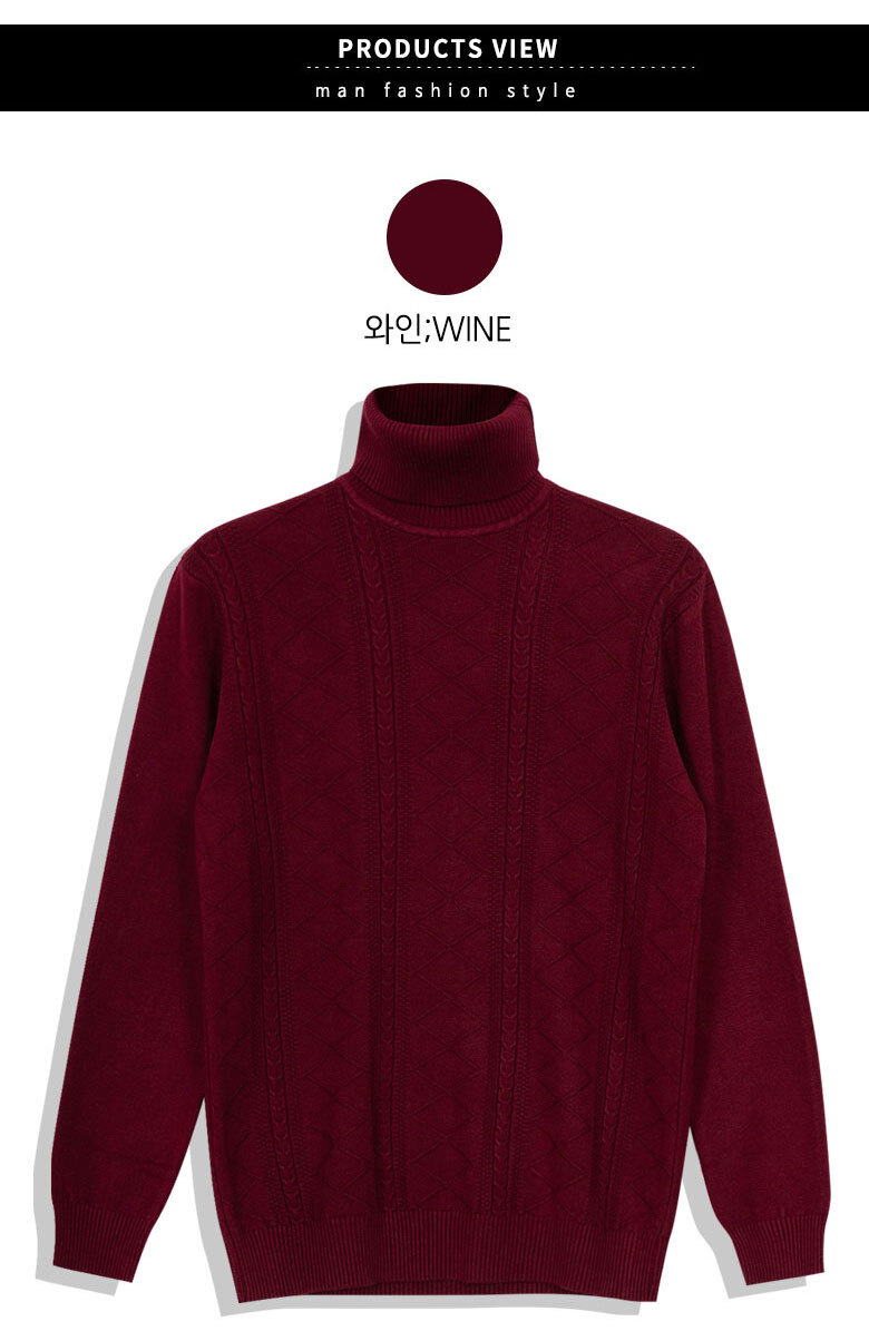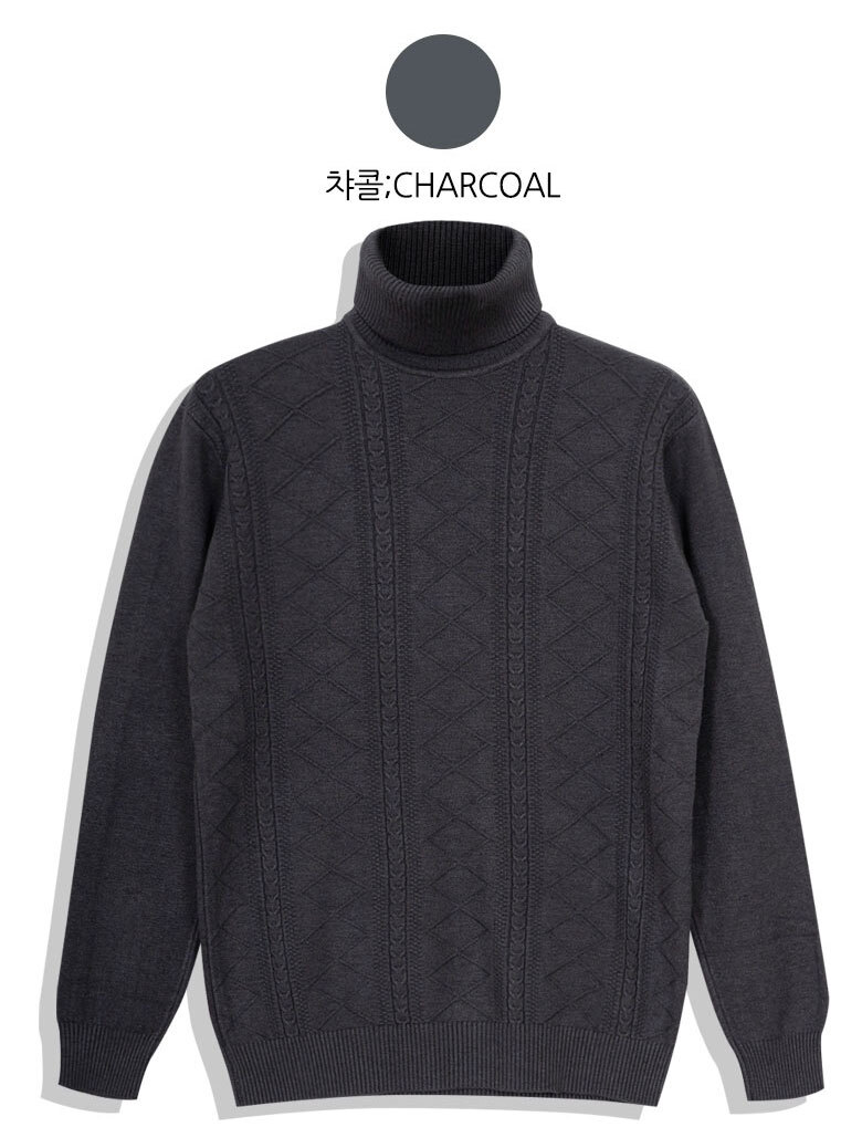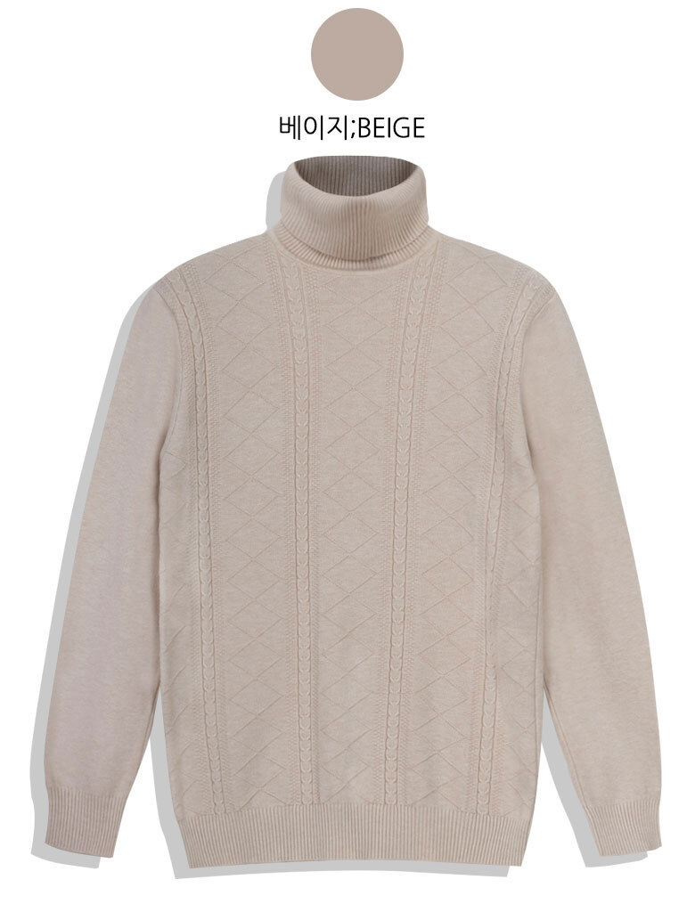 (디바옴므)겨울 꽈배기 심플 직조 니트 목폴라 스웨터 골지