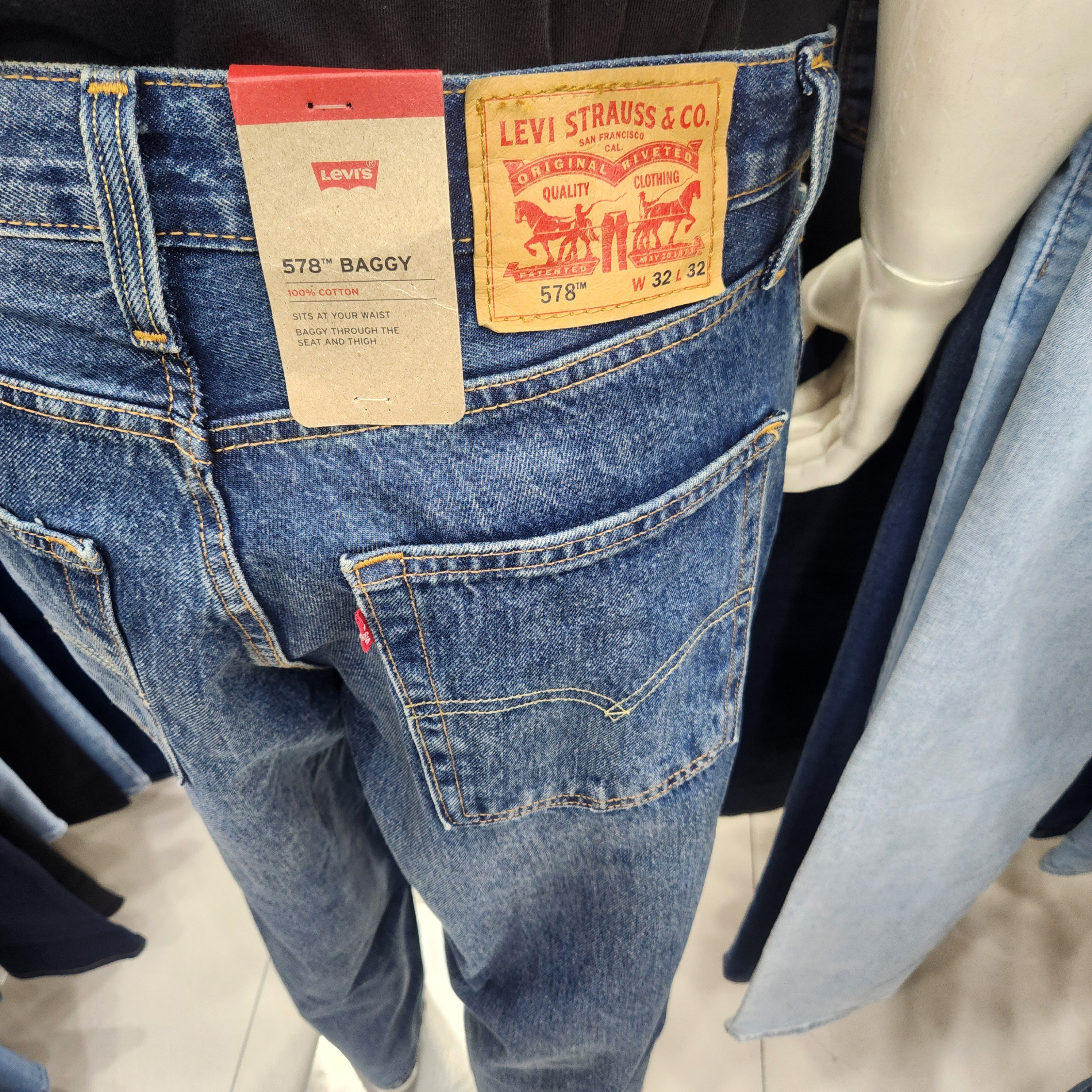 리바이스 남성 578 배기 진입니다.발목까지 헐렁한 느낌을 주어 캐주얼하게 착용가능합니다.전체적으로 루즈핏으로 여유있게 나온 편입니다.신축성이 없는 소재로 제작되었습니다.상품 발송시 블랭크탭,또는 레드탭.모두 정품으로 랜덤 발송 되는점 참고바라며 조명으로 인해 사진상과 실물이 다를수 있는점 참고바랍니다.마네킹 착용82(32)입니다.