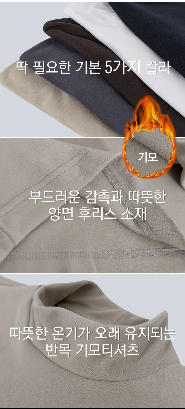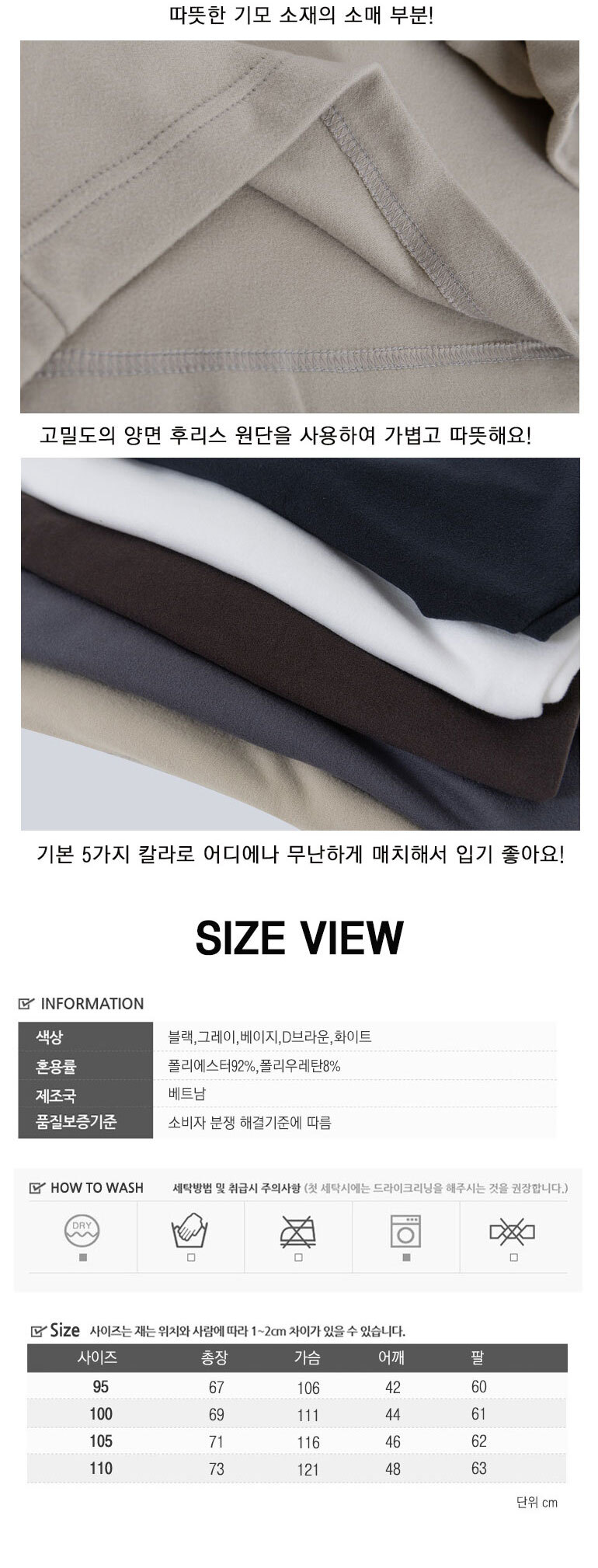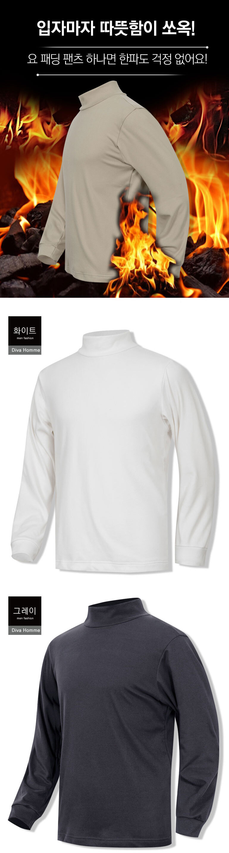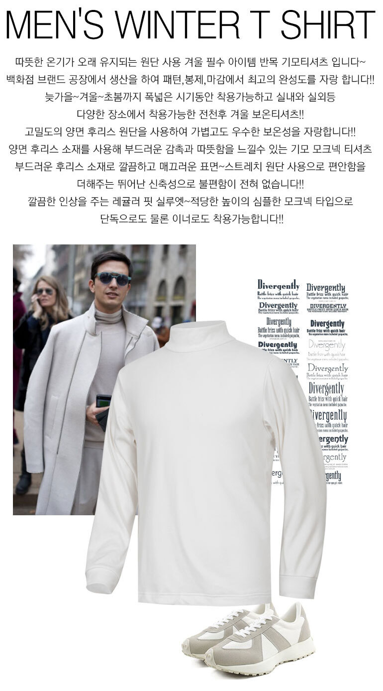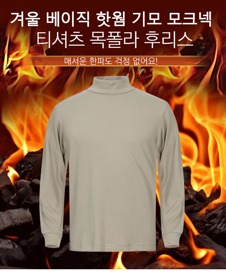 (디바옴므)겨울 베이직 핫웜 기모 모크넥 티셔츠 목폴라 후리스
