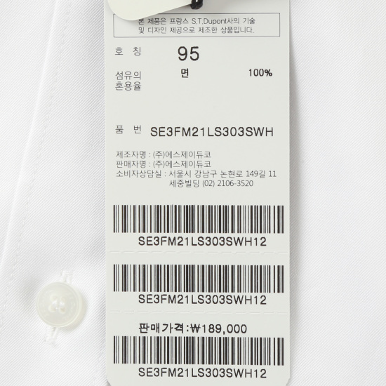 (롯데백화점)(듀퐁셔츠) 화이트 120수 와이드 카라 슬림핏 긴소매 셔츠 SE3FM21LS303SWH