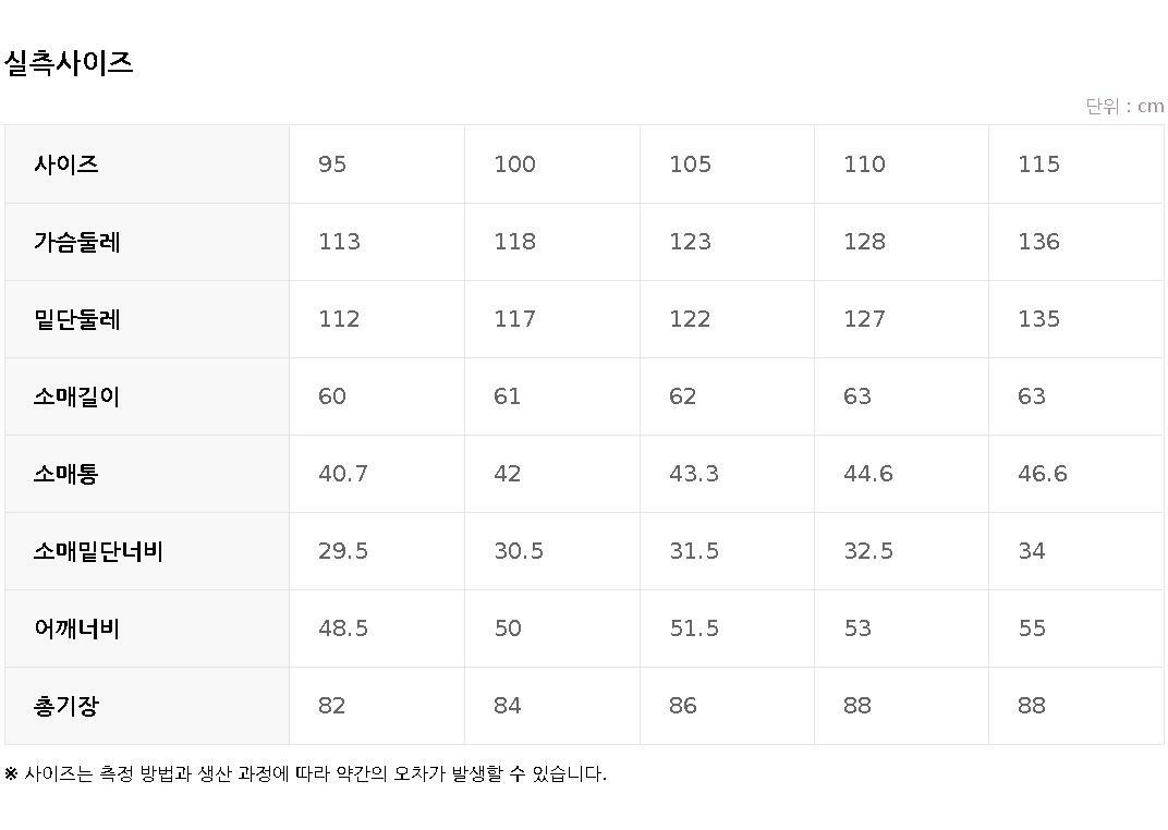 위 싸이즈 조견표는 본 브랜드의 평균적인 수치이며