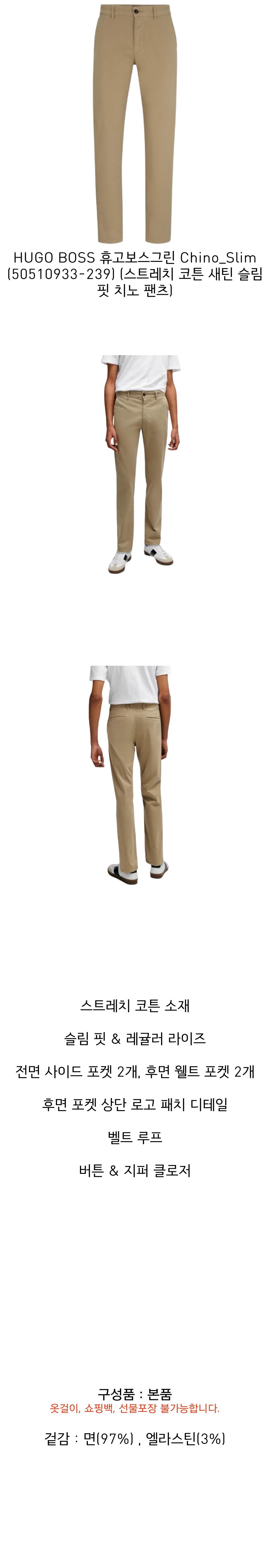 HUGO BOSS 휴고보스그린 Chino_Slim (50510933-239) (스트레치 코튼 새틴 슬림 핏 치노 팬츠)
