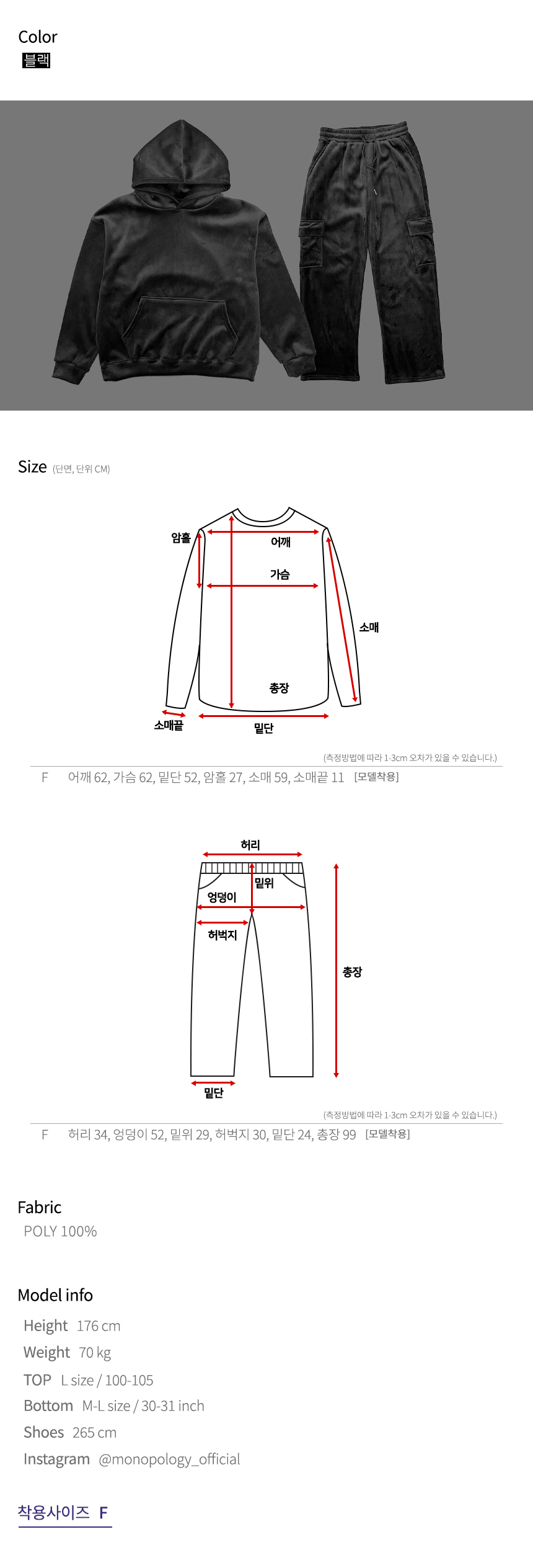 모노폴로지남자벨벳트레이닝 기모트레이닝복세트
