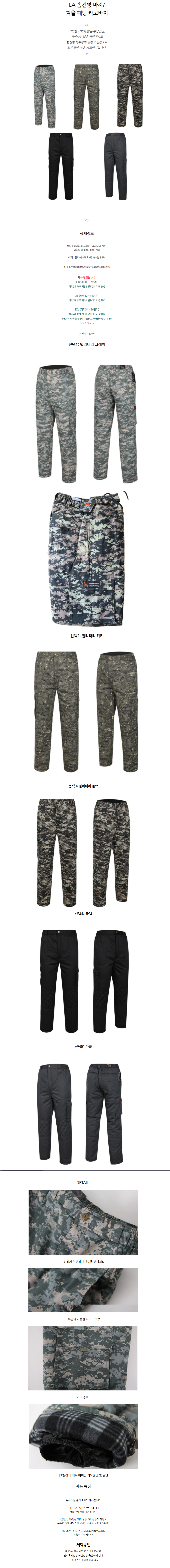 LA 누빔 건빵 솜바지 겨울 패딩 카고 방한 작업바지