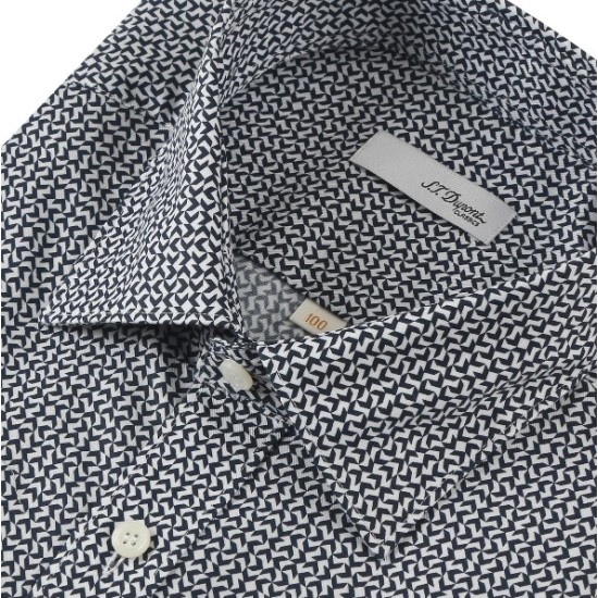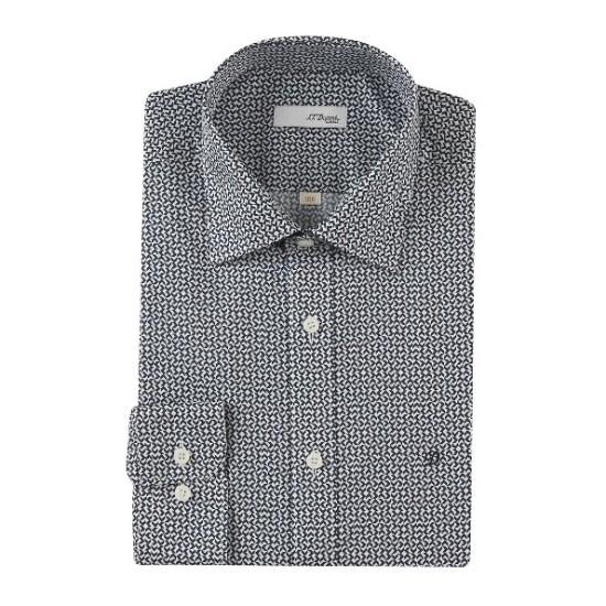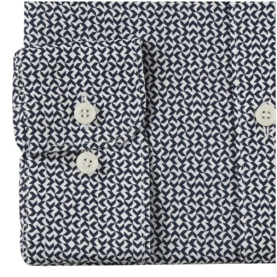 트윌 그라운드의 기하학 모티브 패턴의 베이지블루톤으로 표현된 새로운 비지니스  NEW WHITE 라인의 비즈니스 셔츠입니다.