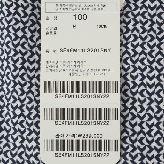 (롯데백화점)2024년F/W NEW WHITE 라인의 비즈니스 셔츠SE4FM11LS201SNY-L
