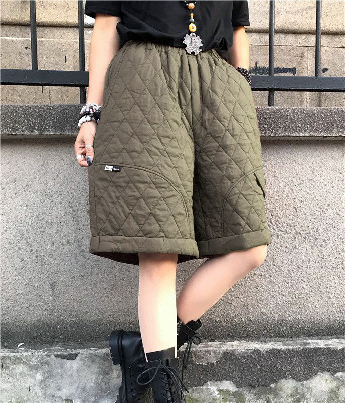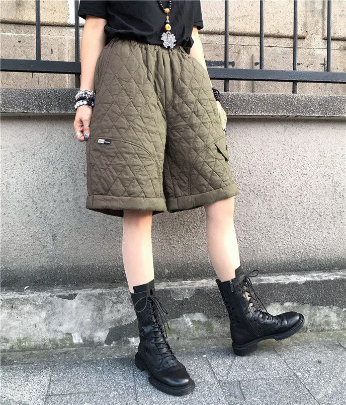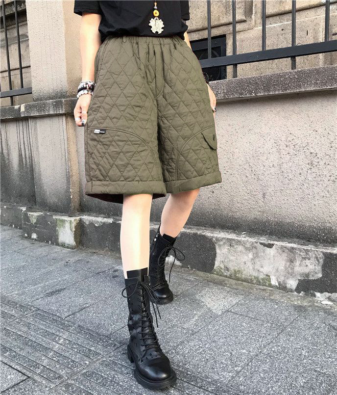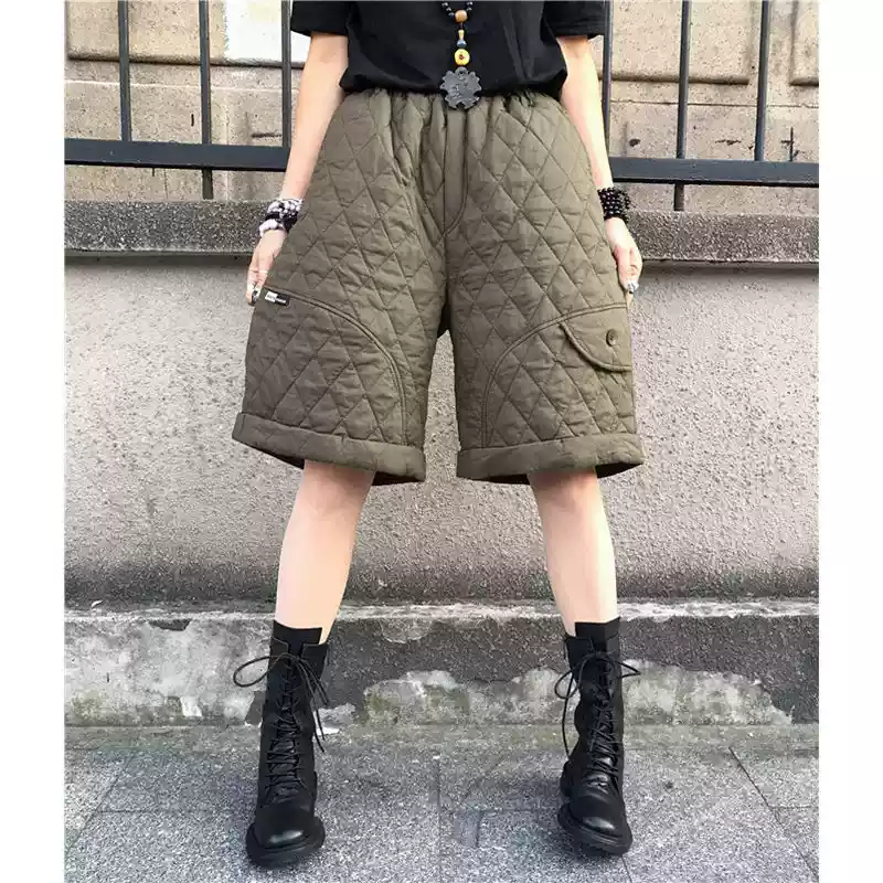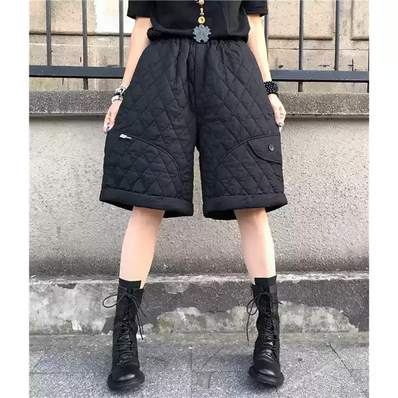 패딩반바지 7부 솜바지 누빔 퀼팅 방한바지 밴딩 여성