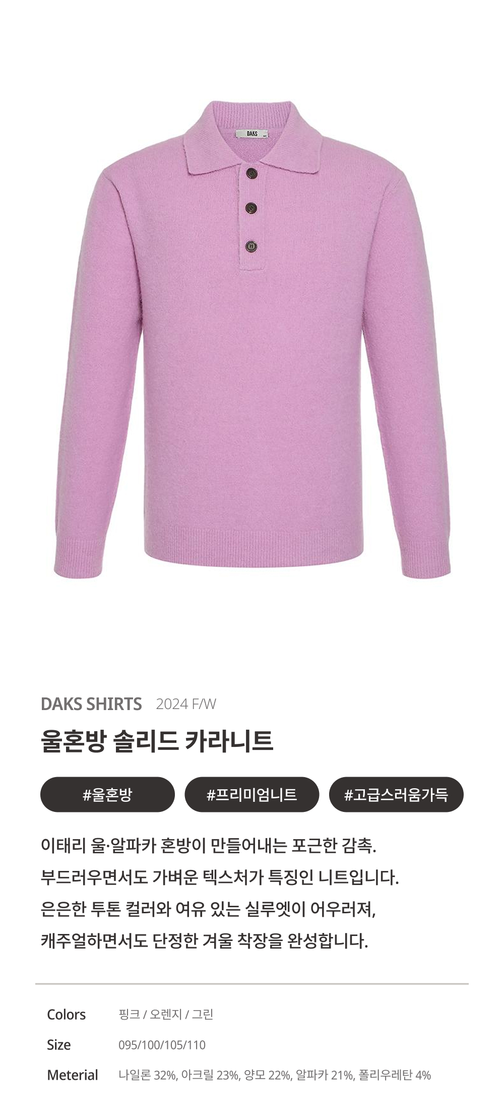 닥스울혼방 솔리드 카라니트 핑크_DKW1SWTL101P1