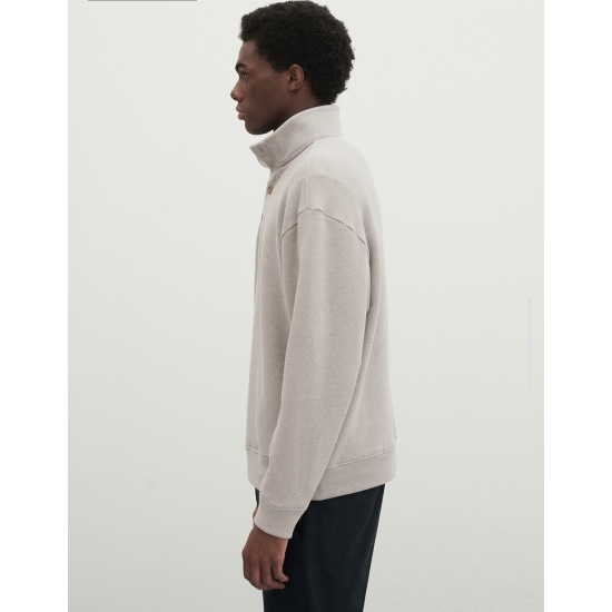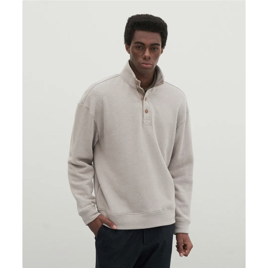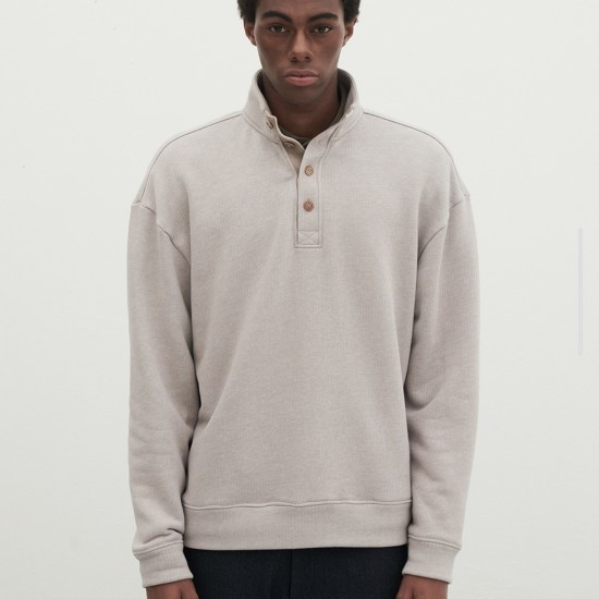 하프4버튼 오버핏 맨투맨 티셔츠 코튼