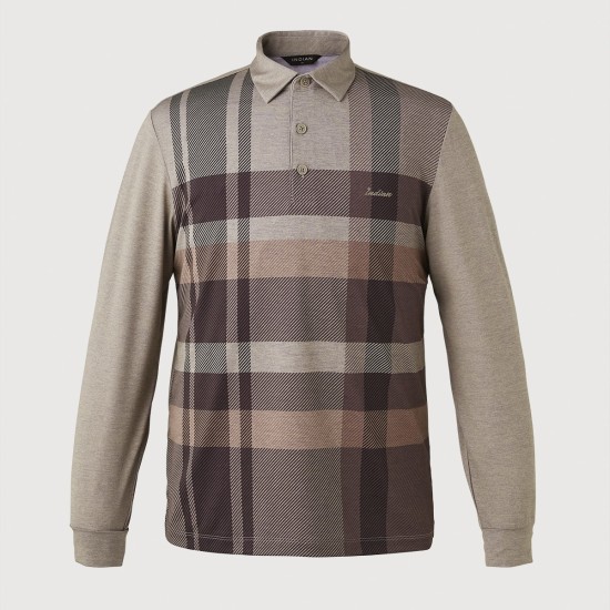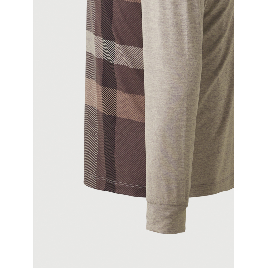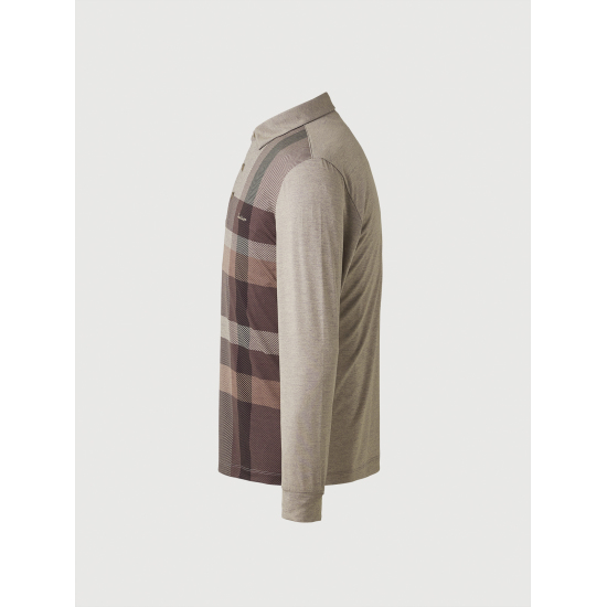 3버튼 여밈의 레귤러핏 티셔츠 트월 체크 패턴의