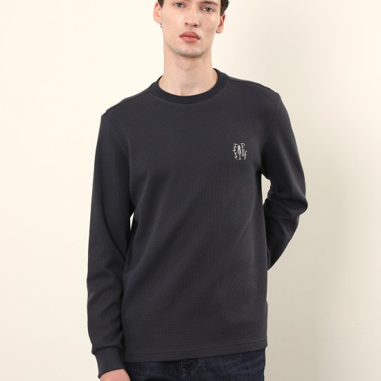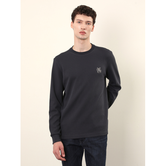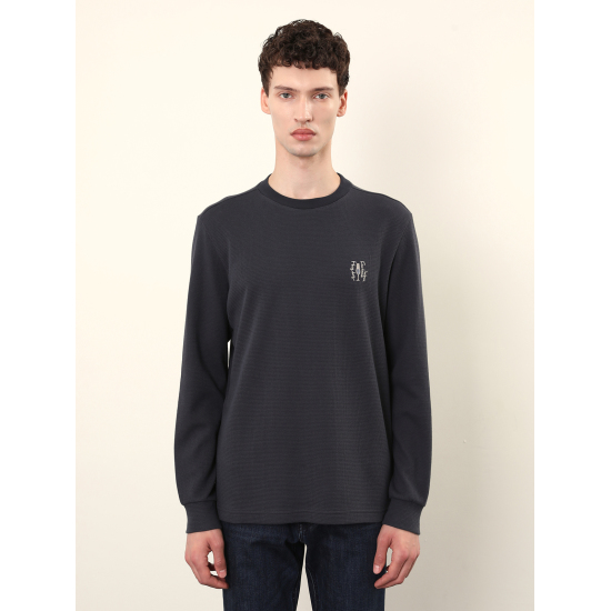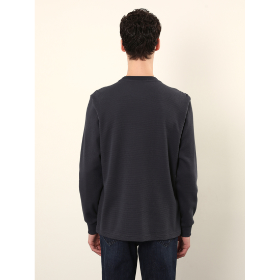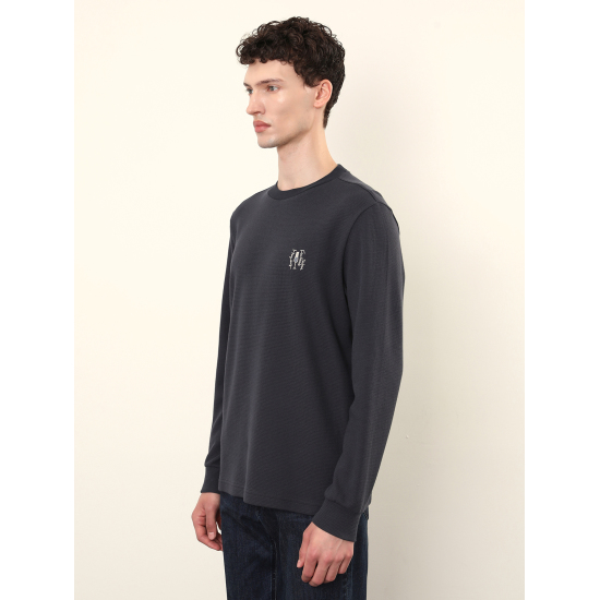 레귤러 핏 라운드 티셔츠 와플 조직감의 코튼 혼방
