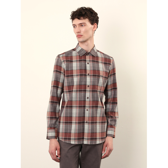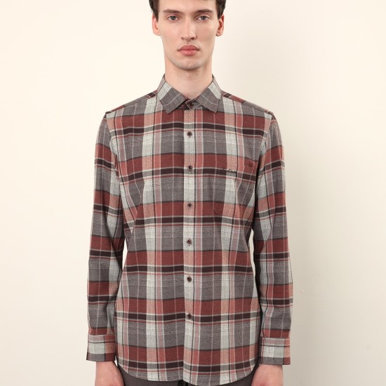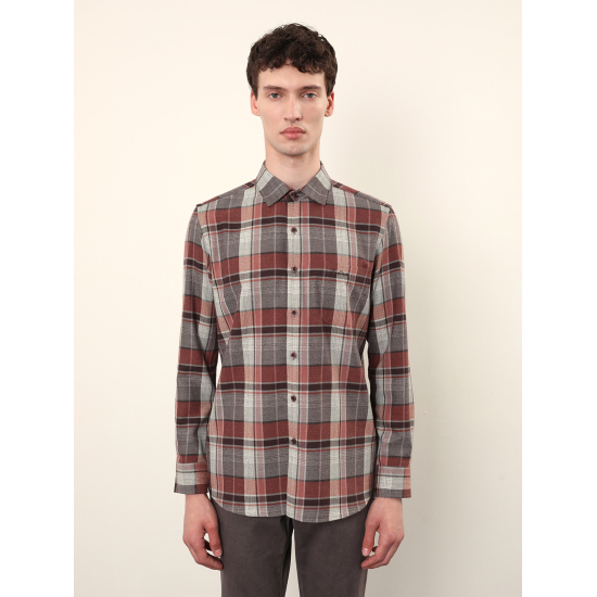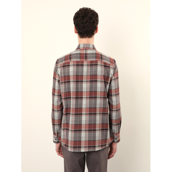 오렌지 칼라의 빅체크셔츠 려귤러 핏으로