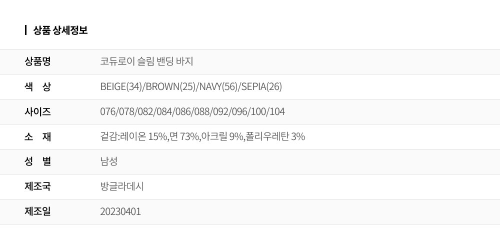 인디안INDIAN 코듀로이 슬림 밴딩 바지_MIUDL3W9361
