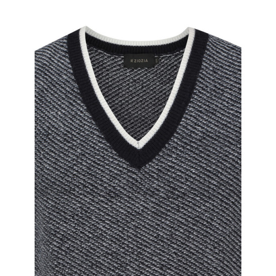 - 투톤 사선조직 V넥 베스트로 조직이 돋보이는 스타일