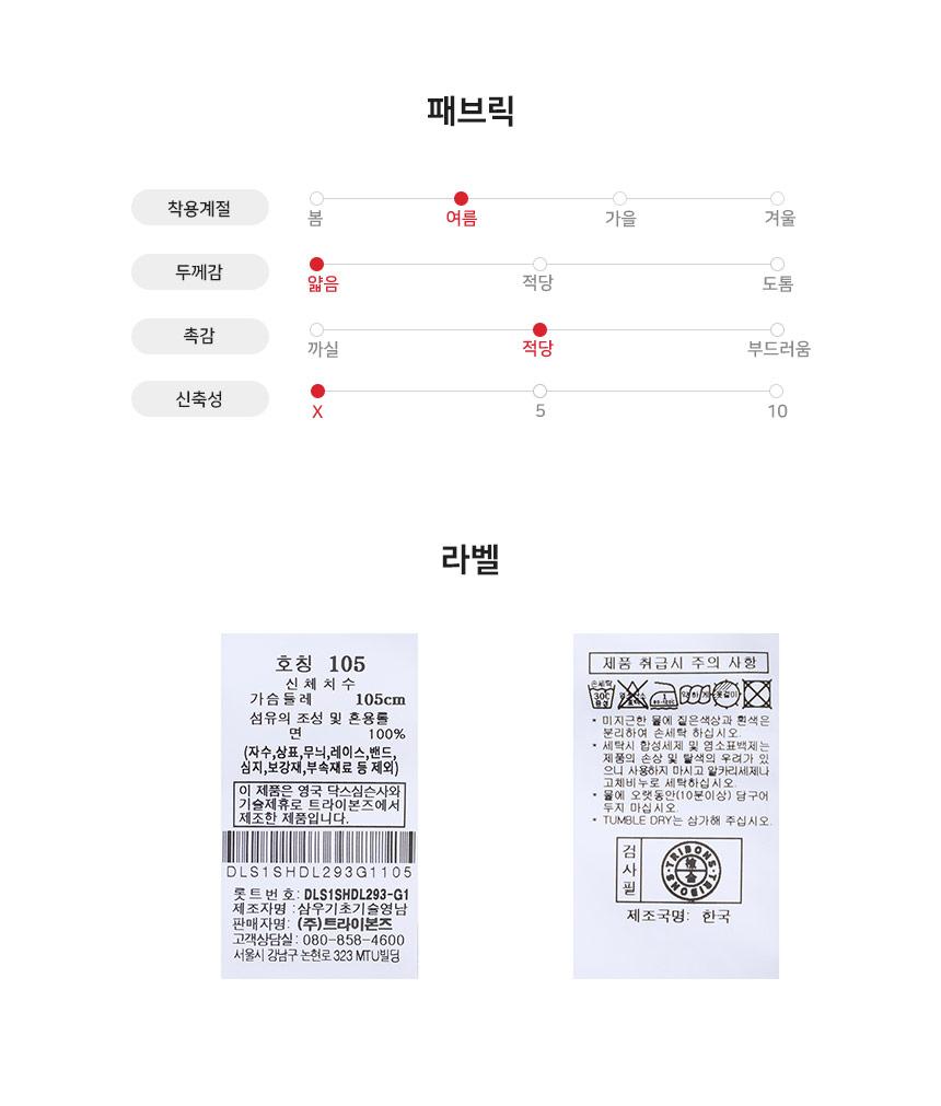 일상 착용 시 자연스러운 구김이 생기는 상품으로 세탁 후 일반/스팀 다리미로 관리해주세요.