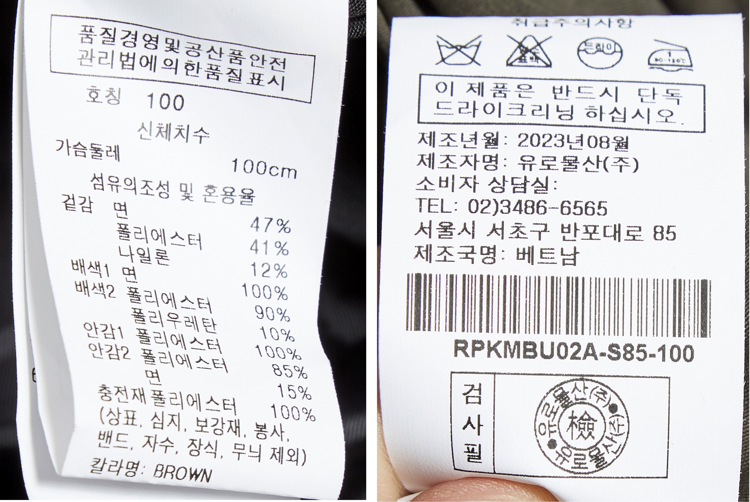배색2은 폴리에스터 90% 폴리우레탄10%