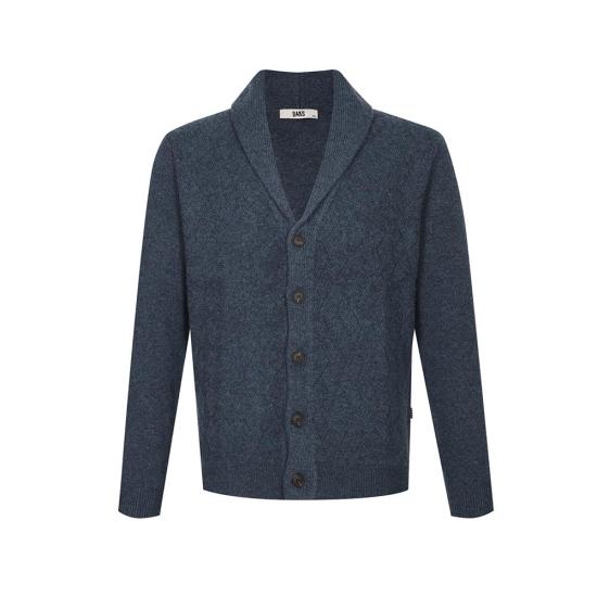 숄카라 디자인의 가디건으로 셔츠와 함께 코디해 클래식한 착장 연출 가능