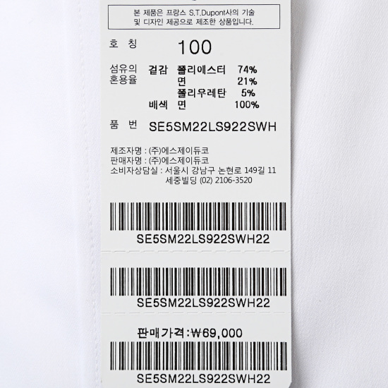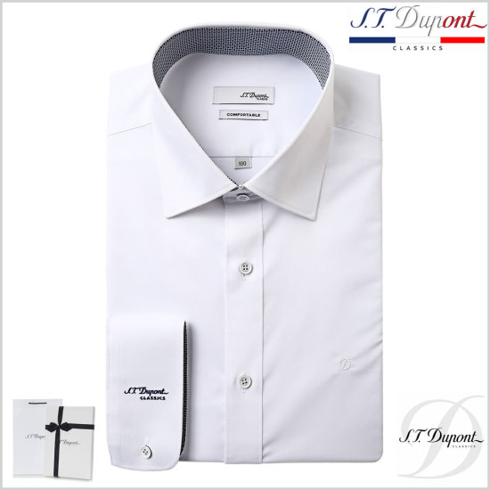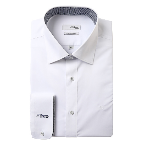 (롯데백화점)(듀퐁셔츠) 화이트 커프스 풀로고 카라 배색 슬림핏 긴팔 셔츠 SE5SM22LS922SWH