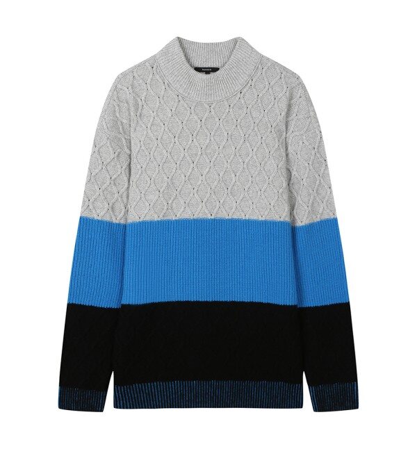 파렌하이트블록 배색 케이블 모크넥 니트(FHUCX8111)