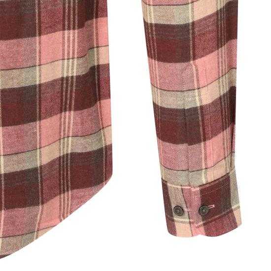 와인톤과 베이지 컬러가 조화를 이룬 타탄 체크 패턴으로 따뜻한 색감이 돋보이며,
