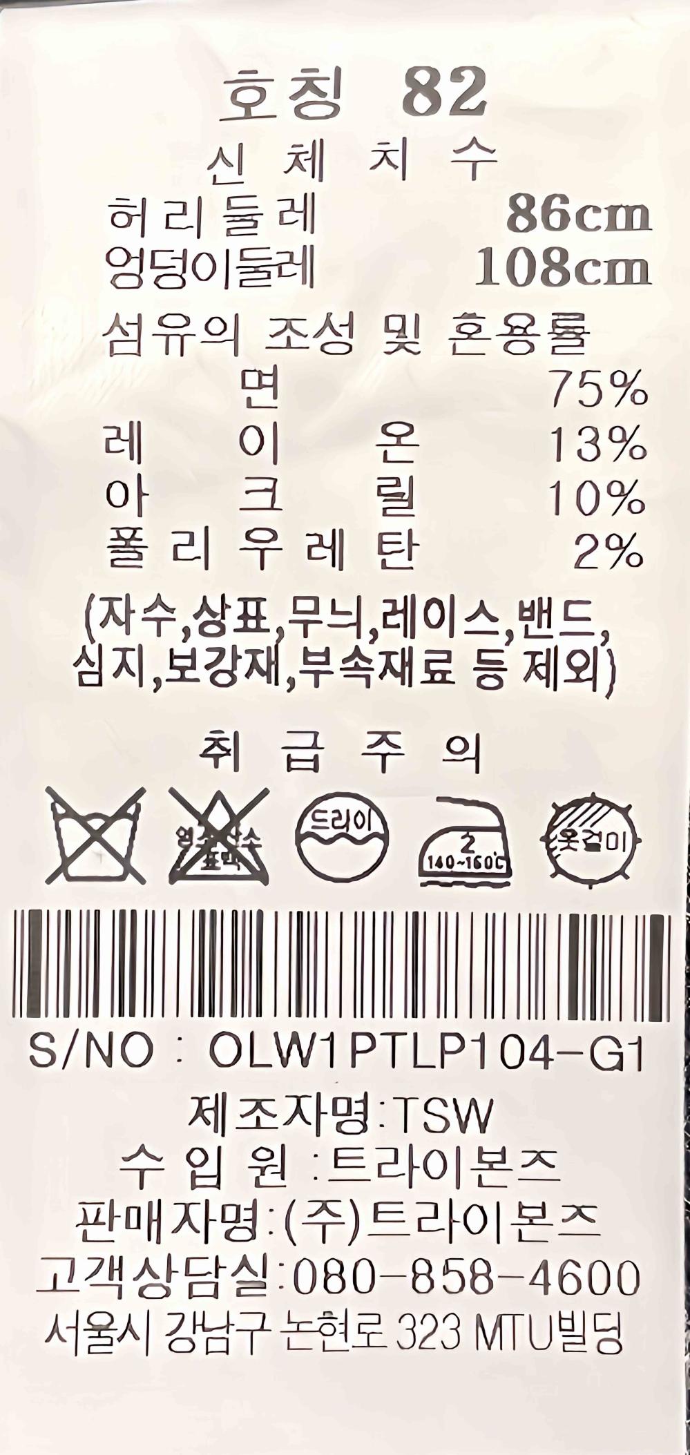 (롯데백화점)노티그 몰스킨 셋업팬츠 OLW1PTLP104-G1LN