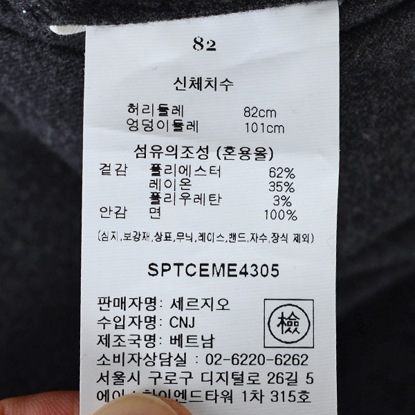 제품소재 : 폴리에스터62%레이온35%폴리우레탄3%